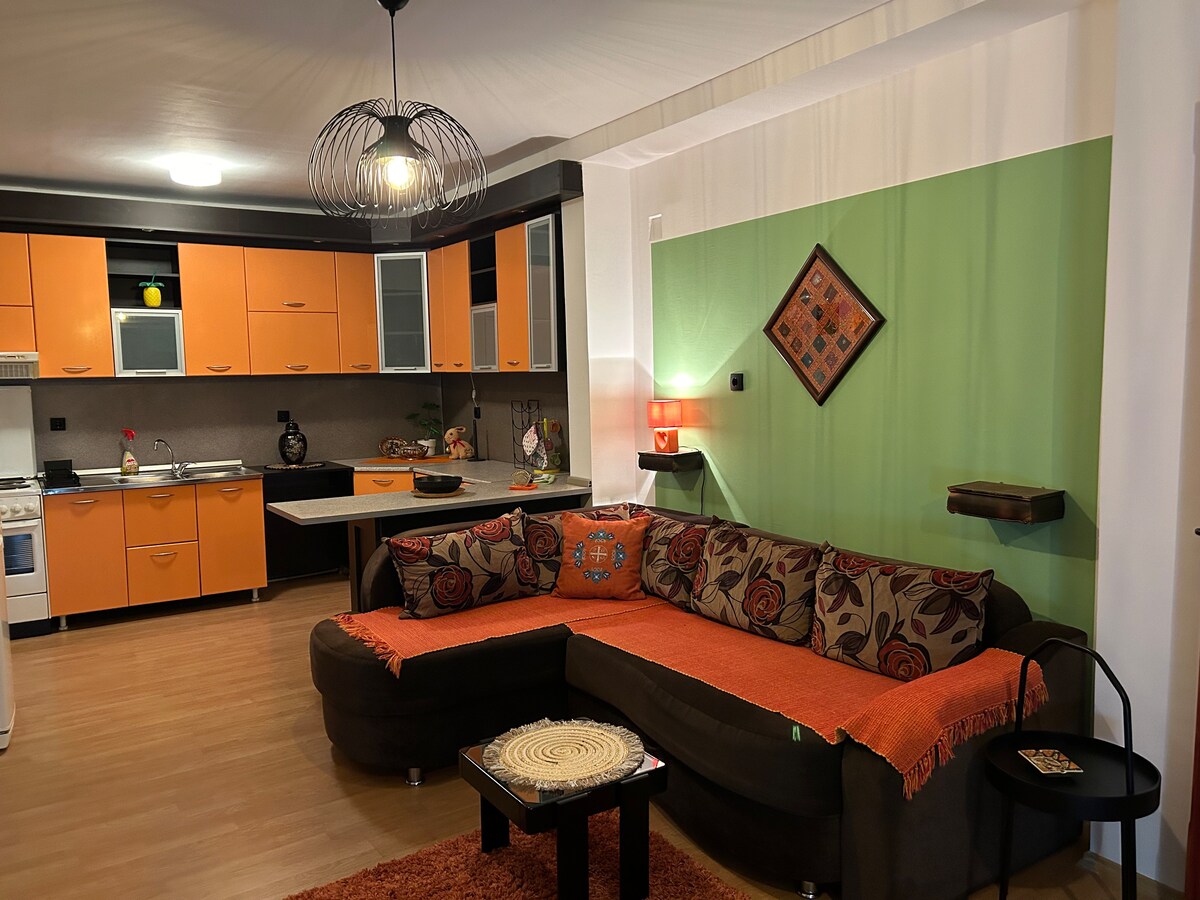 Виняткова квартира в центрі міста. Квартира орієнтована з трьома окремими кімнатами та двома терасами. З однієї тераси відкривається вид на Червону площу, а з другої тераси відкривається вид на прекрасну церкву Пазар. Будівля має два входи. Один вхід веде саме до Червоної площі та піщаної зони, а інший - до входу з паркінгу. Квартира обладнана новими меблями та побутовою технікою і є справжнім задоволенням для перебування там.