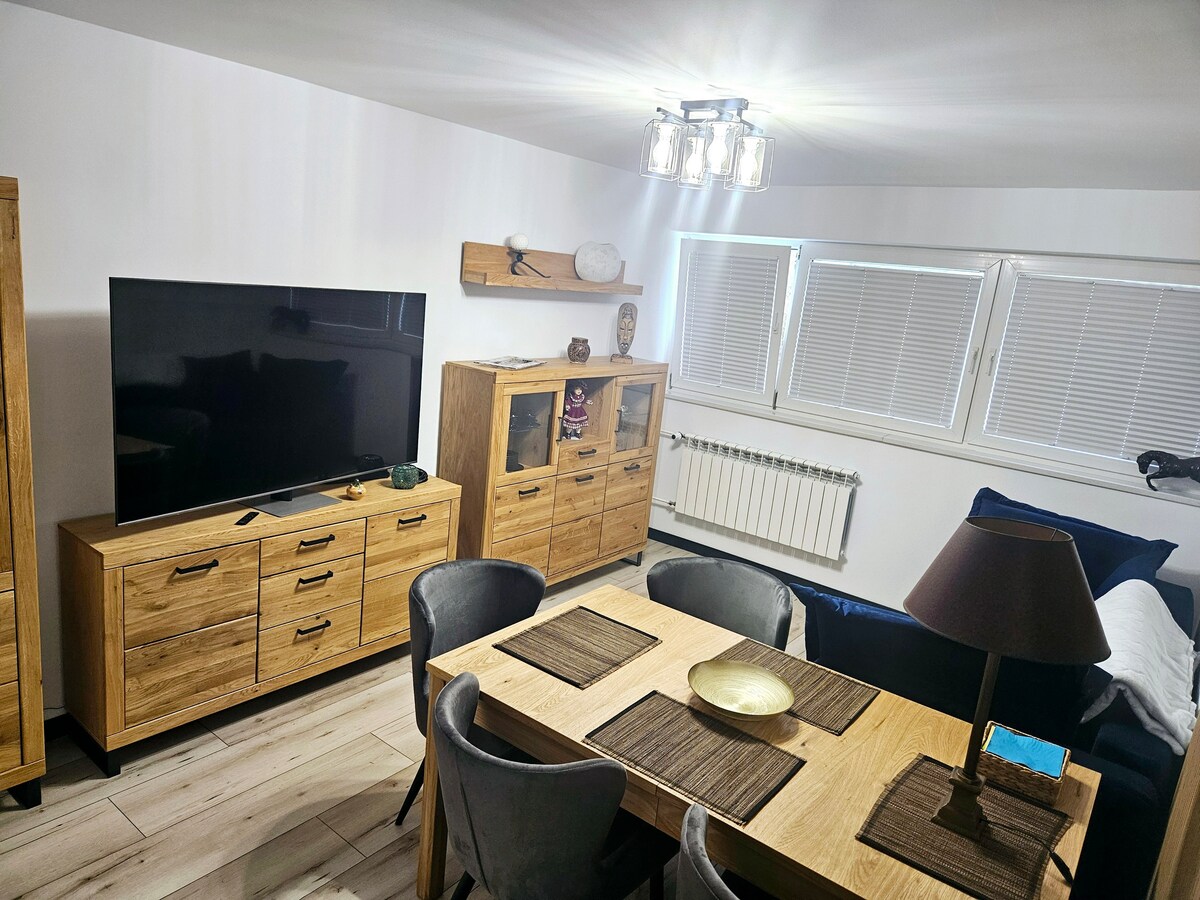 Місце для розміщення та відпочинку для сім 'ї. Ця оселя допоможе вам почуватися як удома. Квартира в муніципалітеті Ринськ, місто Цимбарк. Квартира з'єднана з нещодавно зробленими асфальтовими дорогами, 50 метрів від кільцевої дороги, 2 хвилини на машині до центру Вомбжезна, 2 хвилини пішки до Замкового озера. Це не квартира в багатоквартирному будинку, а квартира з великим садом. Помешкання повністю огороджене і контролюється камерами. У квартирі є підігрів підлоги — тепловий насос. Вітальня з міні-кухнею, а також ванна кімната.