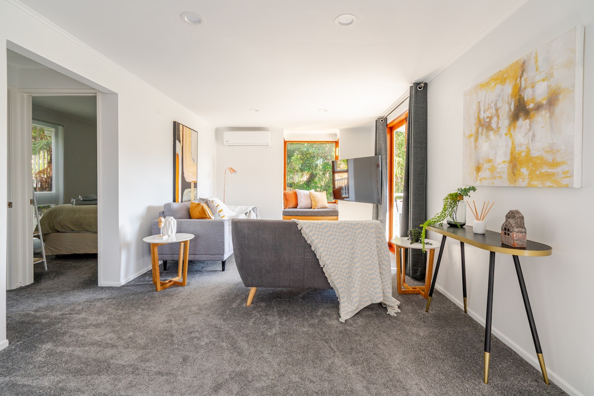 Окреме помешкання з 1 спальнею розташоване на сонячному, тихому та приватному задньому дворі в приголомшливій затоці Майрангі. З критим ґанком, щоб насолоджуватися відпочинком на відкритому повітрі, і він розташований на відстані 2 м від головного будинку спереду. Сніданок включено з квітня 2025 року. Надаються каші, молоко, кава та чай. Помешкання знаходиться в 2 хвилинах ходьби від автобуса, пішки до KFC, Pizza hut, Віндзорського парку та поштового відділення; 1 км до супермаркету, пляжу, ресторанів, кафе, барів та спиртних напоїв. У декількох хвилинах їзди ВІД AUT Millennium та автомагістралі.
