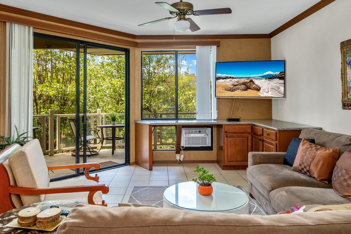 Wailea Ekahi – розкішний курорт, що виходить на красивий пляж Кеавакапу з тропічними садами та 4 басейнами. Блок 16B — це відремонтована квартира-студія на першому поверсі (500 кв. футів) з ліжком розміру King size, душовою кабіною та повністю обладнаною кухнею. Насолоджуйтеся ранковою кавою та їжею на тихому затіненому веранді, яка виходить на пишну зелень і сади, насолоджуючись видом на океан. Коротка прогулянка до пляжу, басейнів, розкішних магазинів, елітних ресторанів і полів для гольфу.