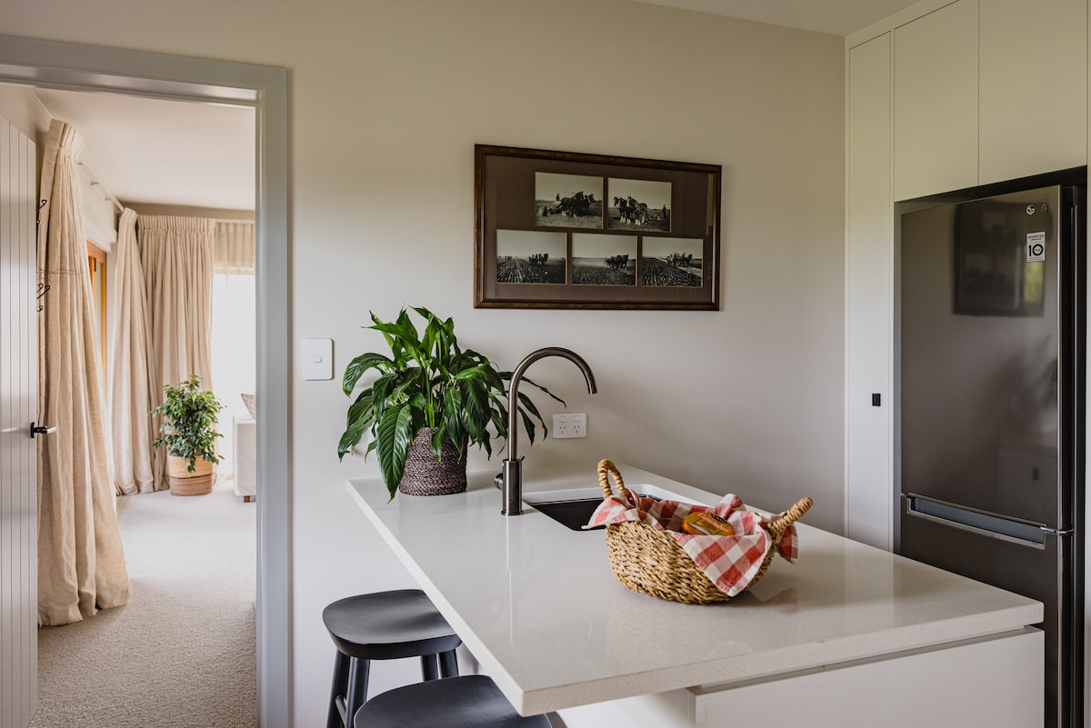 Цей спокійний і комфортабельний котедж розташований у приватному місці в сільській місцевості, всього за 15 хвилин від Гавелок-Норт і Гастінгса, на відстані, яку легко проїхати на велосипеді до виноробень Bridge Pa, зокрема Trinity Hill, Ash Ridge, Oak Estate та інших. Безкоштовне користування електровелосипедами Чудовий сад із видом на сільську місцевість і дружніми вівцями, козами та поні Ваша господиня Сью подасть континентальний сніданок для двох, який буде доставлено до вашої кімнати, щоб ви могли насолодитися ним у приватній обстановці. Окремий вхід і безпечна парковка.