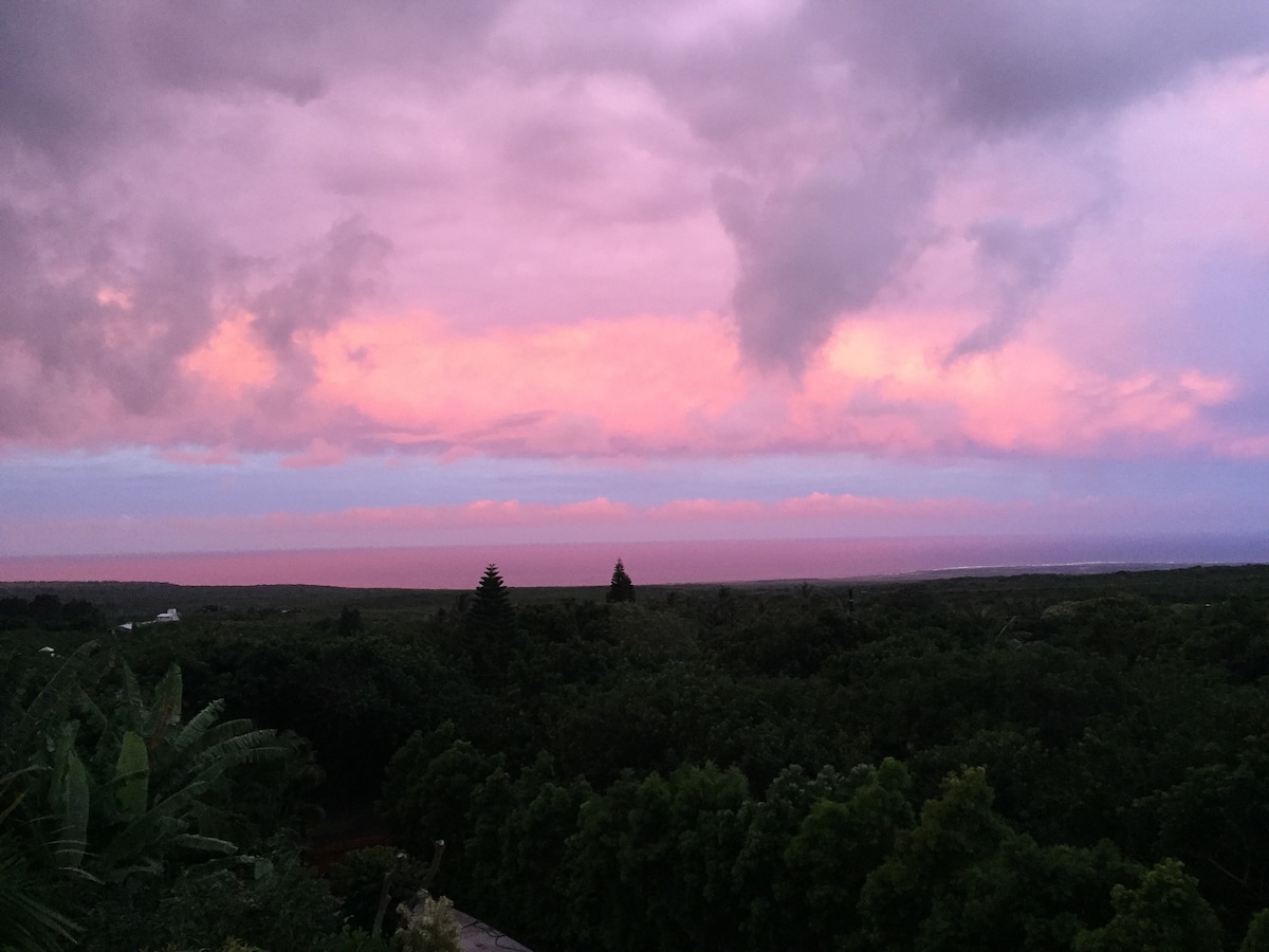 Come one, come all to the Big Island. You are welcome here to rest and relax in this private suite attached to my dream house. Located on the slopes of Mauna Loa; halfway between Kona and Volcano National Park, Aloha House is the perfect retreat from the hustle and bustle of your life, located at the 80 mile marker. A great place to land while exploring the real natural beauty of the Big Island.