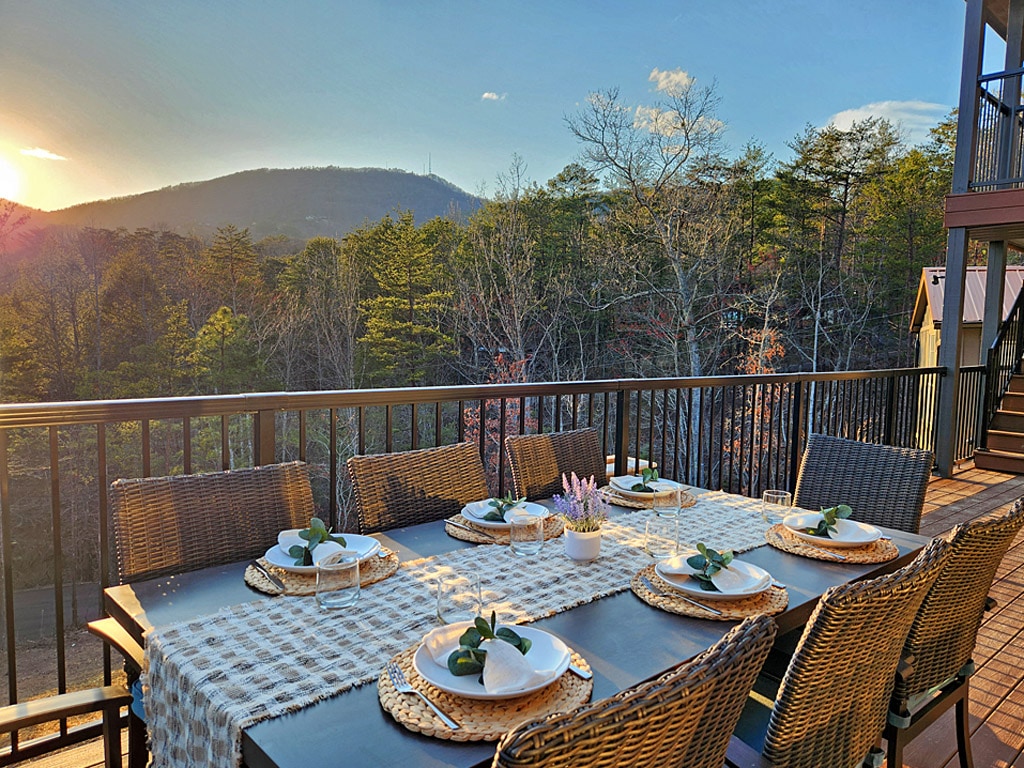 Stunning Mountain Views - Modern Comforts! This two-level cabin offers breathtaking mountain vistas. Whether you’re relaxing on the log rockers on the wrap-around decks, soaking in the jacuzzi whirlpool tub upstairs, or unwinding in the bubbling hot tub on the back deck, the scenery will leave you in awe. Conveniently located 25 minutes from the Great Smokey Mountains. •Two-level cabin •Mountain vistas •Pool table •Hot tub •Jacuzzi •Large smart TV •Patio Swing