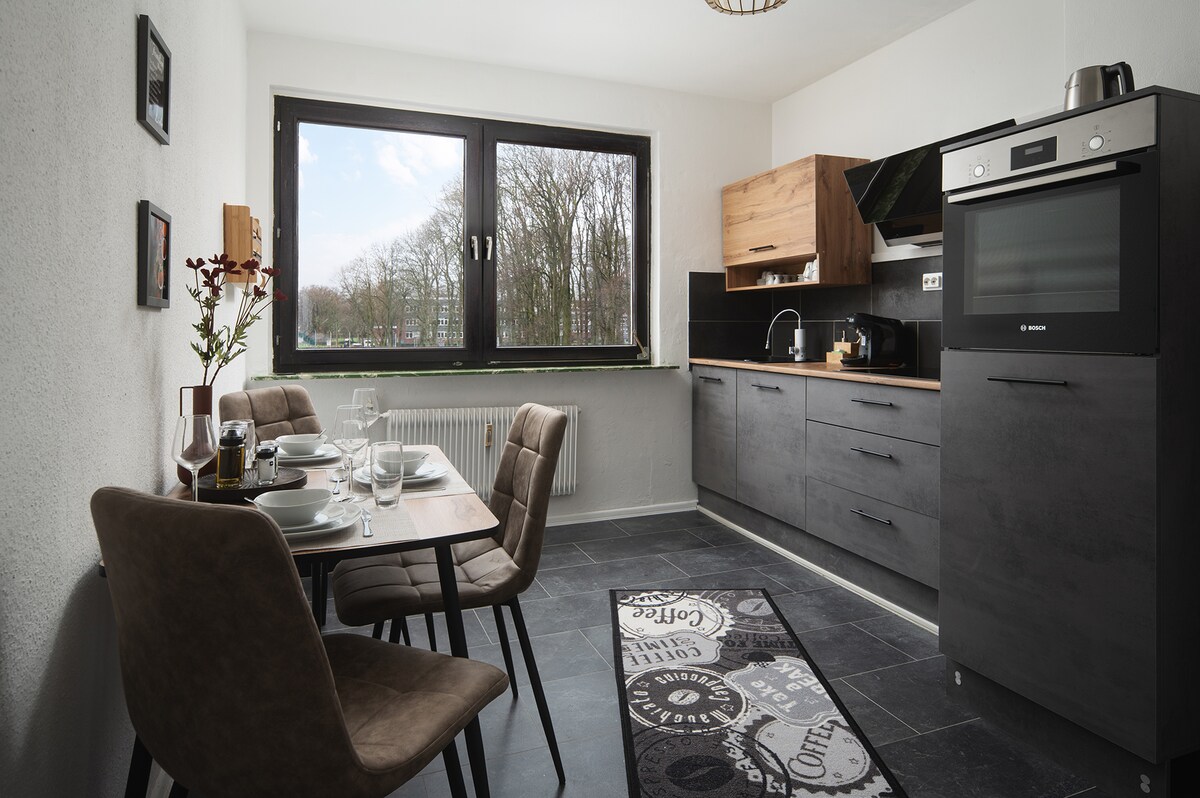 Messebesuch, Fußballspiel, geschäftlich oder ein paar entspannte Tage. Unsere komplett ausgestattete Wohnung mit Balkon und eigenem Stellplatz liegt im Dortmunder Nordwesten. Durch die gute Anbindung ist die Innenstand, Westfalenhallen und das Stadion in weniger als 20 Minuten zu erreichen. Im Ortskern von Mengede befindet sich fußläufig alles, was im alltäglichen Leben benötigt wird. Handtücher und Föhn musst Du nicht mitbringen.