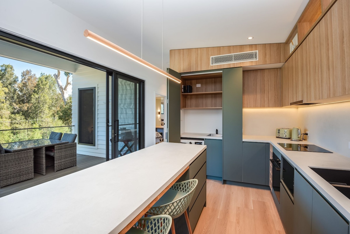 Лофт розташований всього в хвилині ходьби від сусіднього пляжу Форрестерс і вишукано оформлений, щоб відображати його прибережне оточення з м 'якими нейтральними текстурами по всій території. Припаркуйте свій автомобіль прямо перед будинком і увійдіть через власний усамітнений двір. На сходах ви знайдете вітальню відкритої плани з міні-кухнею та окремою розкішною ванною кімнатою з м 'якою білизною. Прогуляйтеся нагору, щоб знайти найкраще місце для відпочинку для пар - просторе місце для відпочинку та відпочинку.