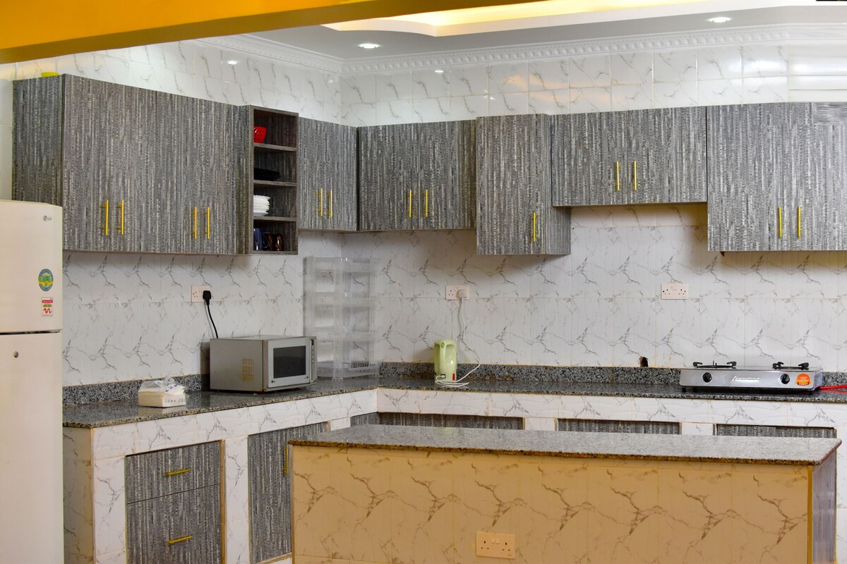 Ласкаво просимо до нашого красиво оформленого мінімалістичного помешкання, розташованого в спокійному, спокійному місці. Ідеальне місце для відпочинку після відпочинку з чудовим Wi-Fi! Вітальня, що освітлена природним сонячним світлом, чудово підходить для купання та омолодження. Кухня добре обладнана, що робить приготування їжі легким і швидким. Вечори тихі, ви отримуєте глибокий сон, прокидаєтеся під пісню птахів, оновлюєтеся й готові до нового дня. Він знаходиться за 1 км від центрального делового центру Муранги.