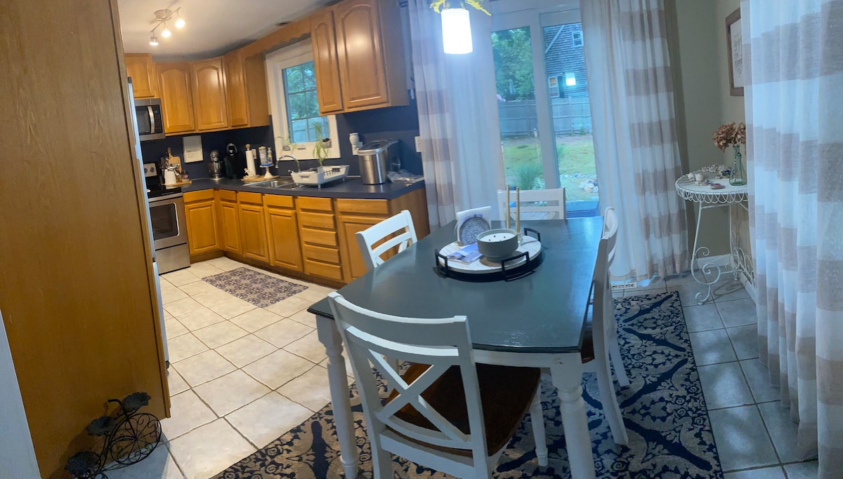 Насолоджуйтеся легким життям у Кейп-Коді в цьому помешканні з 3 спальнями та 2 ванними кімнатами, що розташоване всього за дві милі від пляжу та за декілька хвилин ходьби від кафе-морозива Smitty's Ice Cream. Усередині ви знайдете затишну вітальню з каміном, добре обладнану кухню та комфортабельні спальні для відпочинку після дня, проведеного біля моря. Відпочиньте біля газового каміна або подивіться, як діти граються на гойдалках. Fisherman's Cove Retreat – це затишний будинок для відпочинку на мисі Кейп-Код, який зручно розташований поруч із пляжами, магазинами та ресторанами.