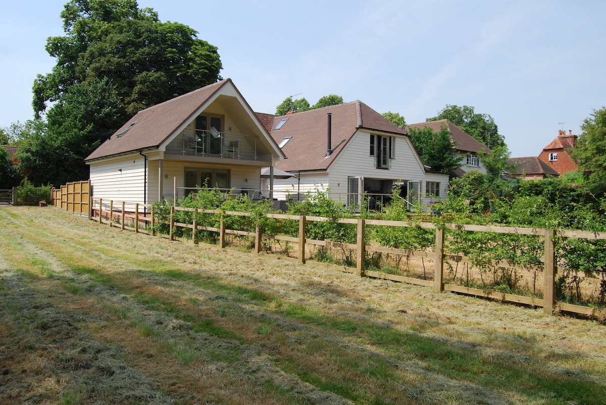 Чудовий флігель/люкс з окремою вітальнею, спальнею (ліжко розміру King size) та ванною кімнатою — ідеально підходить для пари. Одноразове використання. Прикріплено до головного будинку, але має власний окремий вхід і самостійне прибуття. Парковка на під 'їзді. Смарт-телевізор. У нас немає кухні, але є холодильник, чайник, тостер і чай і кава, а також молоко та сік. Ми пропонуємо прогулянки на човні за додаткову плату. Поїзд до Генлі, Рідінга та Лондона. 5 хвилин до річки Темзи