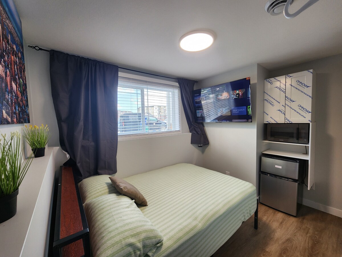 Яскраві та чисті юридичні апартаменти. Цей повністю мебльований підвальний блок має окремий вхід і звукоізольовану стелю та стіни. Великі вікна та дев 'ятифутові стелі, а також відкритий дизайн створюють просторе відчуття. У люксі-студії * є високоякісний матрац Sterns і Foster, а також ванна кімната з 4 предметами. Диван-ліжко дозволяє розмістити третю особу. Поруч торговий центр, пішохідні стежки, природні луги та спортивний комплекс. Десять хвилин їзди до Університету Саскачевана.