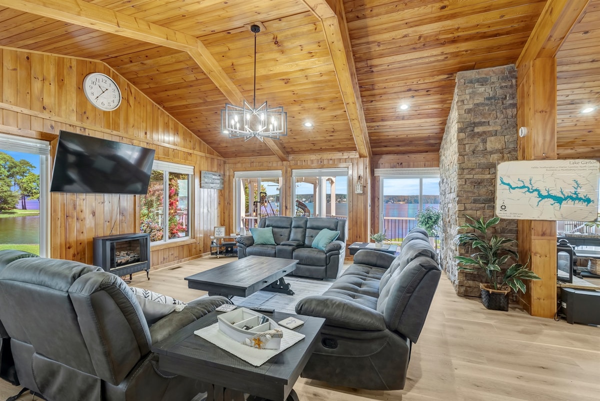 Відпочиньте в цьому затишному будинку на березі озера, який вміщує 8 осіб – ідеально підходить для сімей і друзів! Насолодіться приватним причалом, каяком, дошкою для сапсерфінгу та краєвидами на воду. Відпочиньте на ґанку, приготуйте їжу на повністю обладнаній кухні або розслабтеся у вітальні з 50-дюймовим телевізором. Це ідеальне місце для відпочинку на озері: 3 спальні, 2 ванні кімнати та багато місця для зустрічей. Лише за кілька хвилин від човнової пандусу, з можливістю перебування з домашніми тваринами, і сповнене чарівності – ваше ідеальне місце для відпочинку чекає! Чудовий задній ґанок! Розташована в районі Ітонс-Феррі-Естейтс.