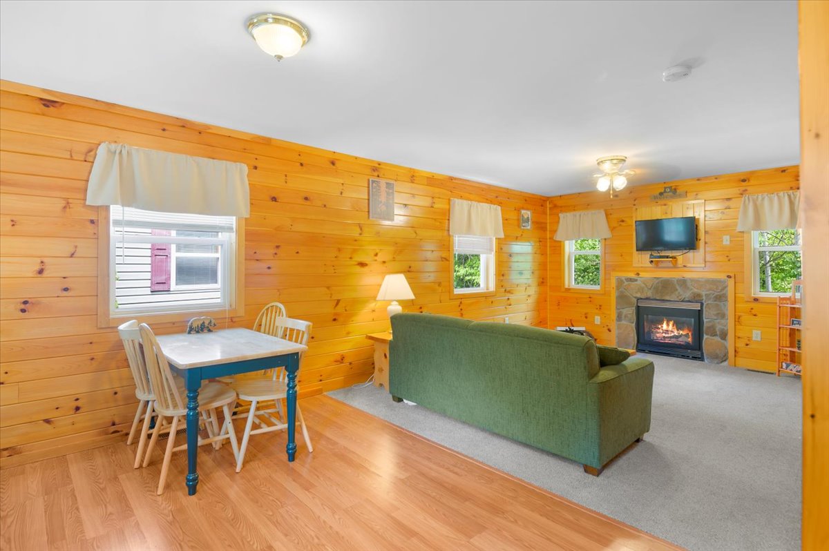 Nestled in the Adirondacks, this one bedroom condo is the perfect place for your Lake George getaway. This unit consists of small private deck, one bedroom with queen bed, one bathroom, living room with fireplace and kitchen. Other property amenities include pavillion with BBQ and pool table, Pool, gym and coin operated laundry. We welcome you to stay with us for your Lake George visit. **DISCLAIMER**- Furniture and decor may vary in every cottage.