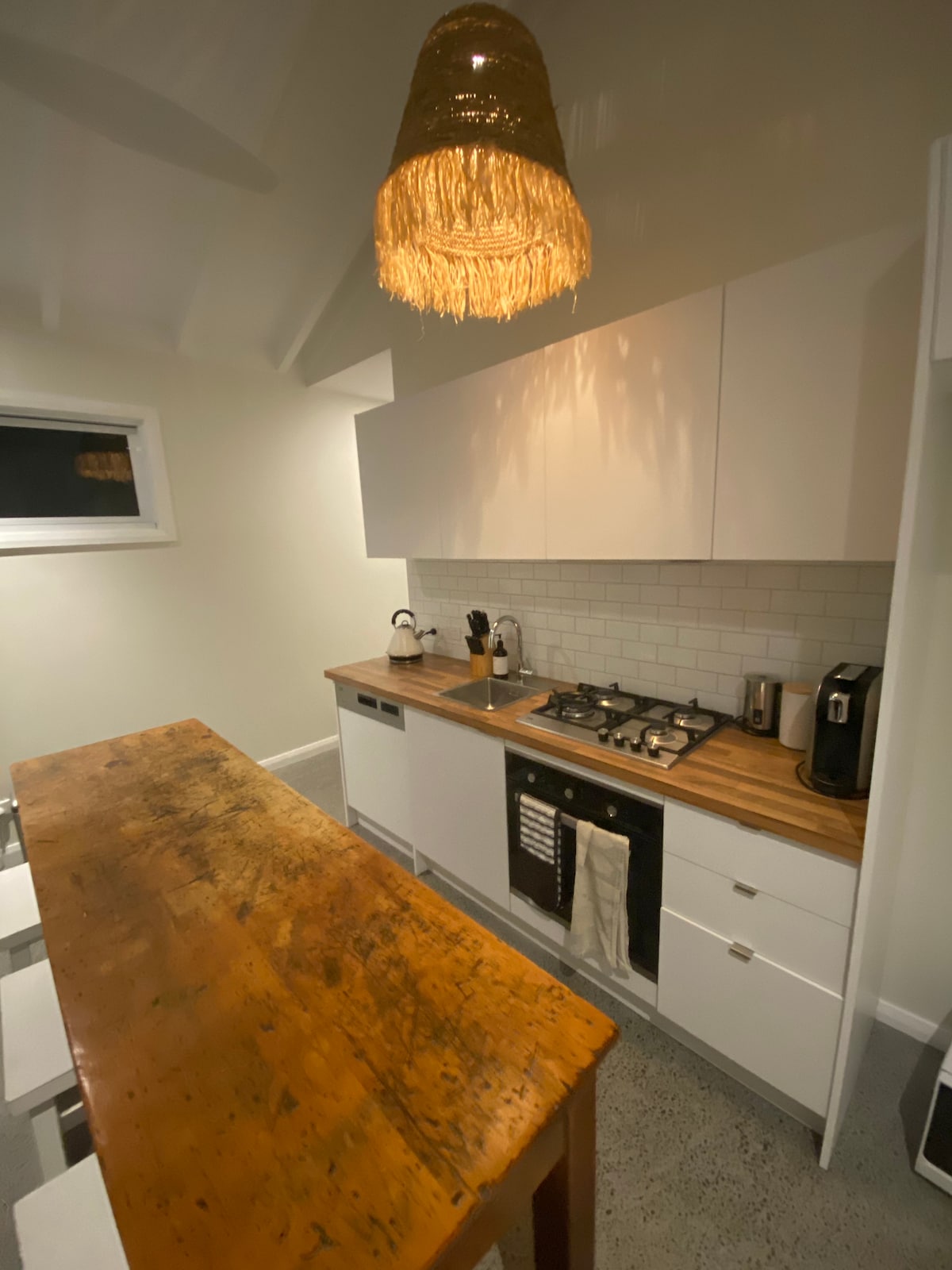 Світло та простора квартира з 1 спальнею в саду з окремим входом. Щойно побудовано з високими стелями, відкритими балками та полірованими бетонними підлогами . У спальні є лофт, який можна досліджувати. Чудове місце, щоб почитати книгу або поспати. Є окрема лаунж-зона/ кухня зі скляними розсувними дверима, які ведуть на терасу з видом на сад. Палуба виходить на північ і просочується сонцем. У вас є власна повністю обладнана кухня та комбінована пральня у ванній кімнаті. Для комфорту у вас є стельові вентилятори та кондиціонер.