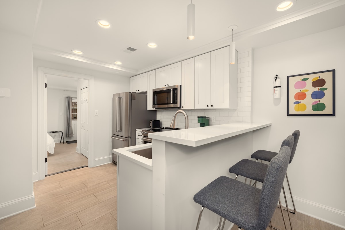 Ласкаво просимо до чарівного дворівневого відпочинку на Капітолійському пагорбі! У 1,5 кварталах від метро і всього в декількох кроках від Капітолія/Національного торгового центру США, ця перлина пропонує ідеальне поєднання комфорту та зручності. Відпочиньте на плюшевому повнорозмірному ліжку з власною ванною та зручною пральною/сушильною машиною. Приготуйте шторм на повноцінній кухні, повечеряйте в стилі або розслабтеся на затишному дивані-ліжку. Прогуляйтеся до відзначених нагородами їдалень, дивних бутиків і випийте найкращу каву міста. Дозвіл на безкоштовне паркування, щоб ваша поїздка була без зайвих клопотів.