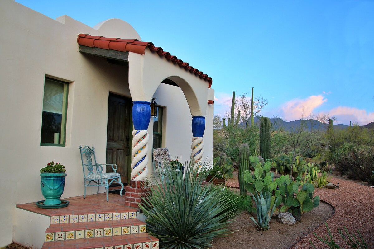 «Це місце - справжній відпочинок у пустелі». Дві спальні, повністю обладнана кухня, Casita-suite, гамак, місце для багаття - усе це розташоване в плюшевому акрах місцевої пустелі, біля тихої, покращеної ґрунтової дороги, в 10 хвилинах від національного парку Сагуаро та в 20 хвилинах їзди від північного заходу Тусона . Мексиканський стиль, сільський відпочинок. Ідеальне місце для пар, невеликих сімей або соло. Ворота до національного парку Сагуаро, Музею пустелі, пам 'ятника Ironwood Ntl, парку Tucson Mtn Park. Доступно щомісяця з квітня по жовтень, 2 гостя - 1350 $ на місяць (+airbnb,податки)