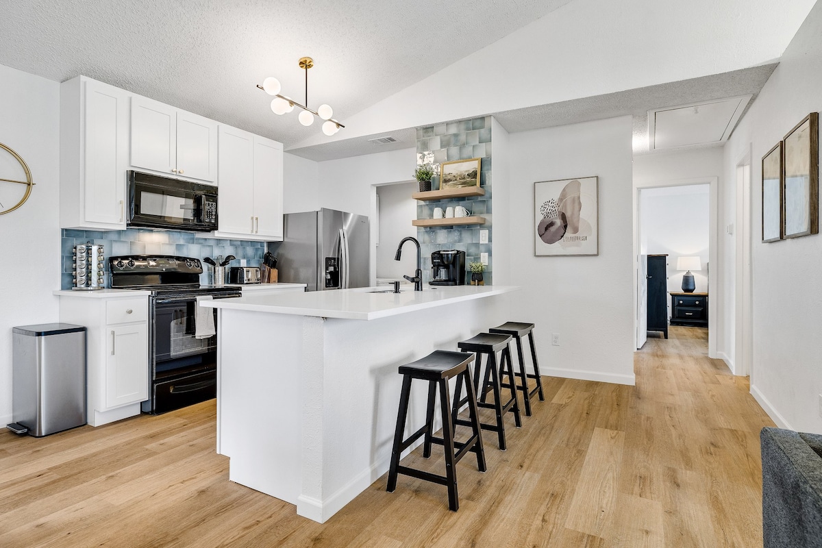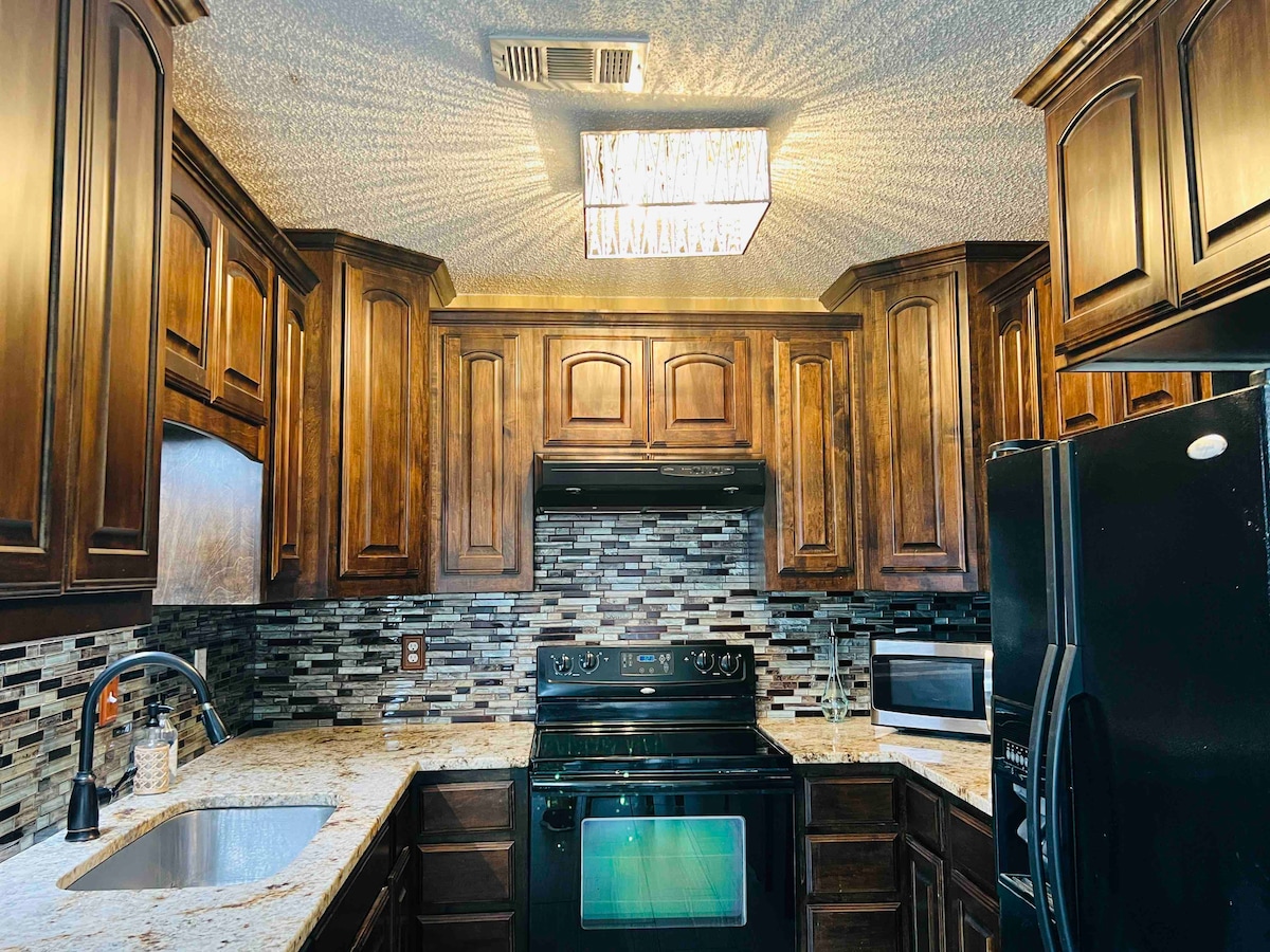 Ласкаво просимо до нашого шикарного помешкання на техаській тематиці Airbnb! Наше стильне помешкання розташоване в центрі міста і може похвалитися красивим декором і безліччю зручностей, щоб забезпечити вам спокійне перебування. Відпочиньте у чудовій кімнаті з 65-дюймовим смарт-телевізором, приготуйте їжу в техаському стилі на повністю обладнаній кухні або насолоджуйтеся великим повністю огородженим заднім двором. Побалуйте себе спокійним нічним сном в одній із комфортабельних спалень. Швидка поїздка до аеропорту DFW та незліченних пам 'яток, відчуття південного шарму та зручності в центрі Техасу!