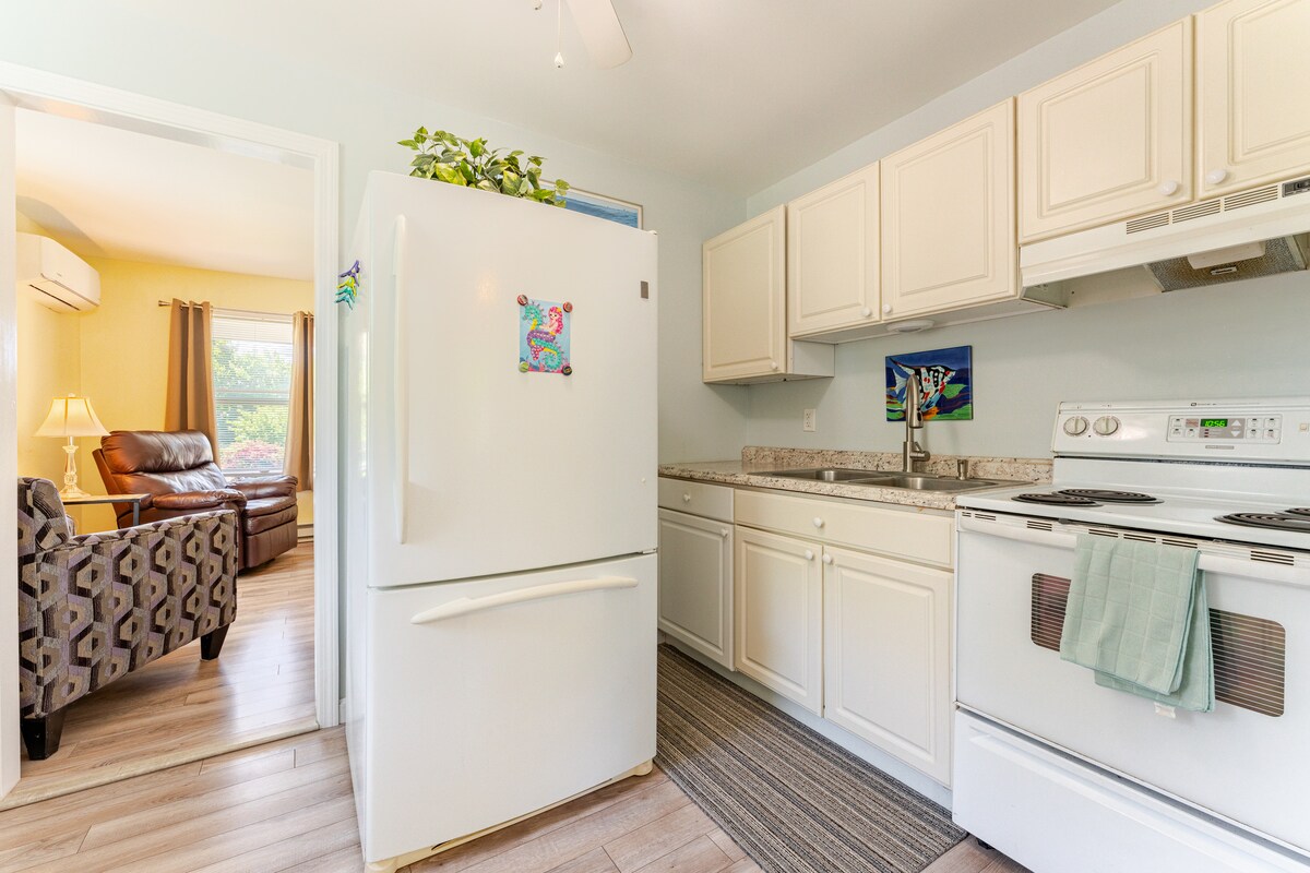 Красивий нещодавно відремонтований будинок всього в декількох хвилинах ходьби від прекрасних пляжів. Поруч із магазинами, фільмами, ресторанами та багатьма іншими пам 'ятками! У комплекті з усією побутовою технікою, повністю обладнаною кухнею, телевізором, Інтернетом. 2 спальні, 1 ванна кімната, вітальня, кухня, їдальня, брудна кімната та передній ганок. Красивий великий двір ідеально підходить для ігор або просто відпочинку ввечері біля вбудованої чаші для багаття з дровами для кемпінгу. Стільки цікавих і розслаблюючих речей, якими можна зайнятися за кілька хвилин від цього чудового місця.