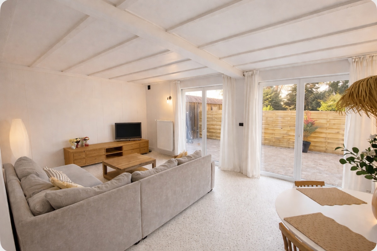 Квартира в 5 хвилинах від центру Ватерлоо, але тиха, на великій яскравій приватній ділянці. З приватним паркінгом. Щойно був повністю відремонтований (квітень 2025 року), щоб найкраще вітати наших господарів з красивим якісним обладнанням. Квартира складається з 2 спалень (1 головна та 1 дитяча спальня з двоярусним ліжком), душової кімнати, окремого туалету, пральні та красивої вітальні з відкритою кухнею, включаючи центральний острів з баром! Усе має бути добре:-)