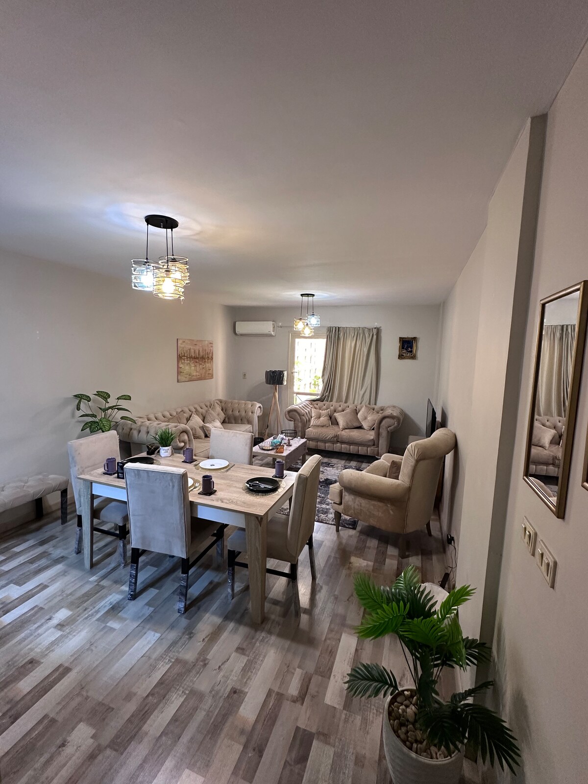 Welcome to my lovely apartment! With 2 bedrooms and a fancy reception area, it's perfect for families or groups of friends traveling together. Very good garden view to feel Relaxing after your day. The apartment is equipped with air conditioning to keep you cool and comfortable during hot summer days. You'll love the stylish decor and cozy atmosphere, which make it the perfect home away from home. 5 mins away from River walk Mall & The Water way Mall. ** 20 mins from Airport **