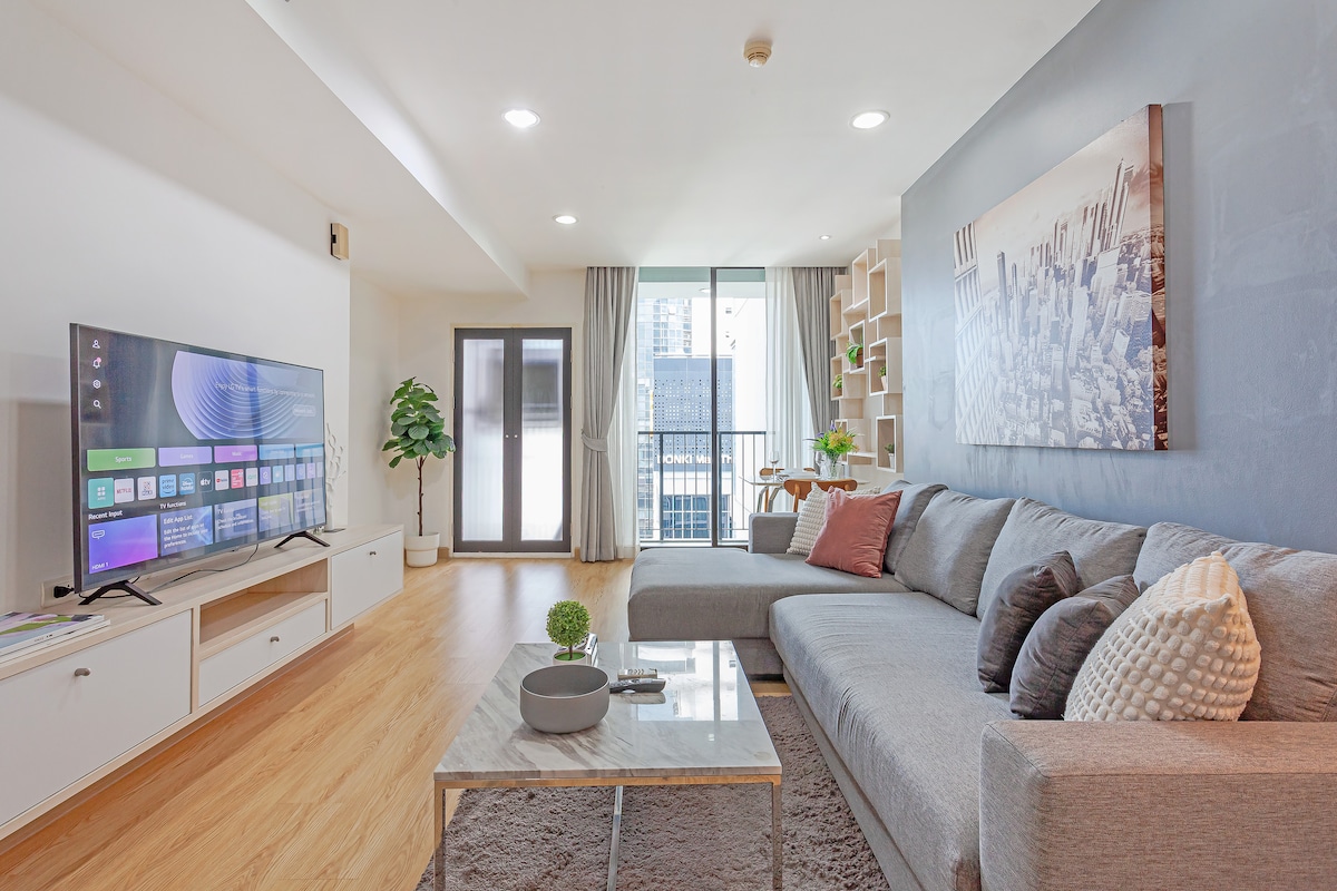 F5 Розкішна квартира з двома спальнями в центрі Бангкока/ASOK/термінал 21/станція метро Сукхумвіт/безбортний басейн