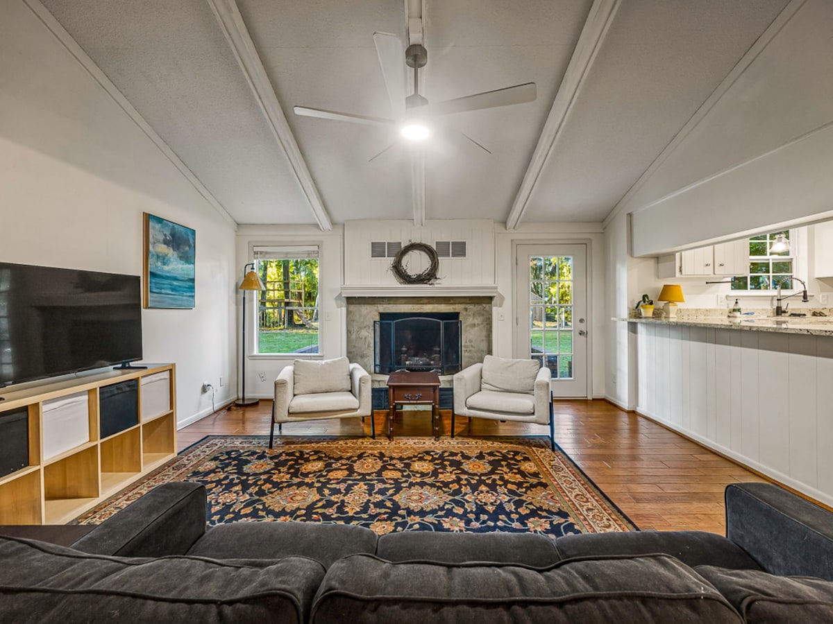 Цей затишний фермерський будинок 1960-х років розташований поруч із прекрасним старим деревом магнолії. Тут є повноцінна кухня та їдальня поряд зі зручною вітальнею з Wi-Fi, телевізором та програвачем. У головній спальні є ліжко розміру «king size» та ванна кімната. У другій спальні є ліжко розміру Queen size. Тут є повноцінна ванна кімната з ванною та душем. У вітальні є камін і розкладний диван. Родзинкою цього будинку є великий закритий ґанок, що виходить на коров’яче пасовище.