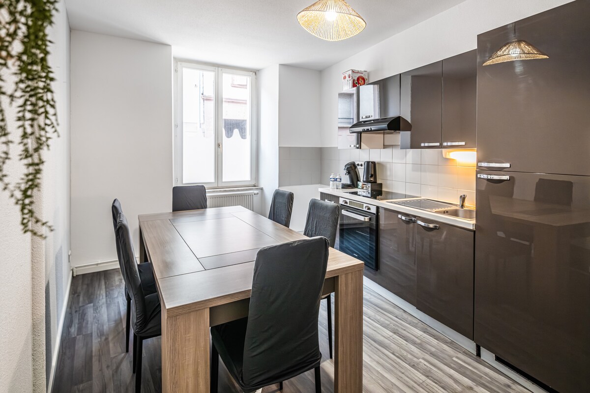 Ласкаво просимо до Сульц-О-Рен, чарівного маленького ельзаського містечка, розташованого біля підніжжя Вогезів, між Кольмаром і Мюлузом. Тут є все для незабутнього перебування Після відпочинку в Ельзасі ви зможете насолодитися комфортом затишного помешкання з гідромасажною ванною та домашнім кінотеатром для затишних вечорів. Ідеально підходить для романтичних вихідних, сімейного відпочинку або відпочинку з друзями. Ми з радістю приймемо вас і порадимо, щоб ваше перебування в Ельзасі було ідеальним 💌