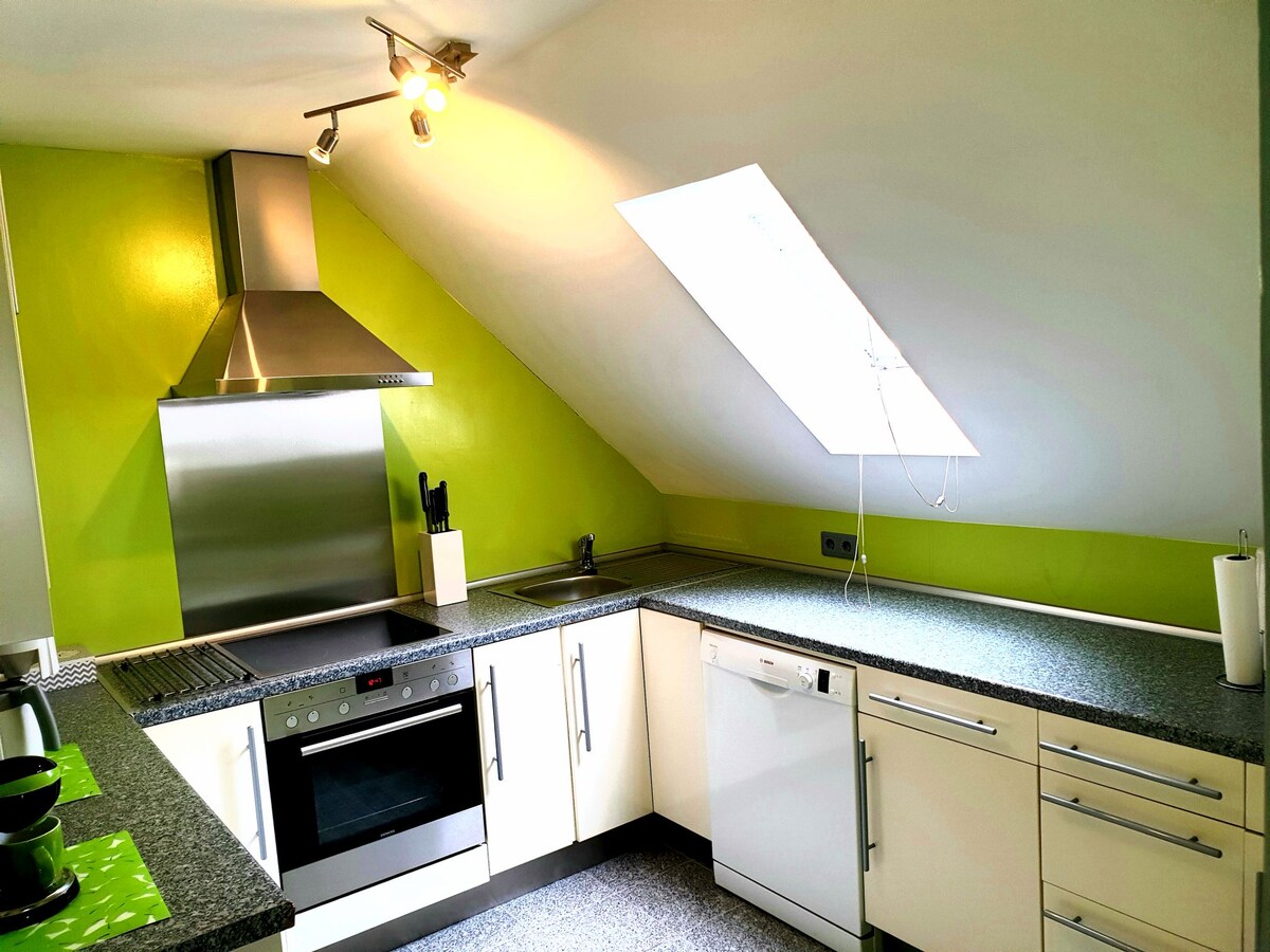 Ласкаво просимо до нашої нещодавно відремонтованої та затишної квартири! Яскрава і чарівна квартира пропонує все необхідне для комфортного перебування. У квартирі є дві спальні, зручна вітальня, повністю обладнана кухня та простора ванна кімната. Поруч розташовані Палатинський ліс і озеро для купання. В 15 хвилинах від авіабази Рамштайн і Кайзерслаутерн. З нетерпінням чекатимемо на вас як гостя!