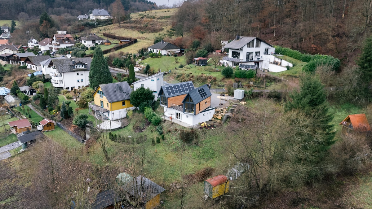 Panoramic 60 m² apartment – for up to 4 guests • King-size bed, sofa bed, folding bed (on request), baby crib • Fully equipped kitchen: stove, oven, kettle, coffee machine, dishwasher, fridge, TV • High-quality linens, towels, coffee & tea • Large terrace with sun lounger, nature view Great location: • 5 min by car / 30 min walk to Idstein center • Hiking trails start at the door • 20 min to Frankfurt Airport & Wiesbaden • 2 km to autobahn • Nearby playground & top grill restaurant