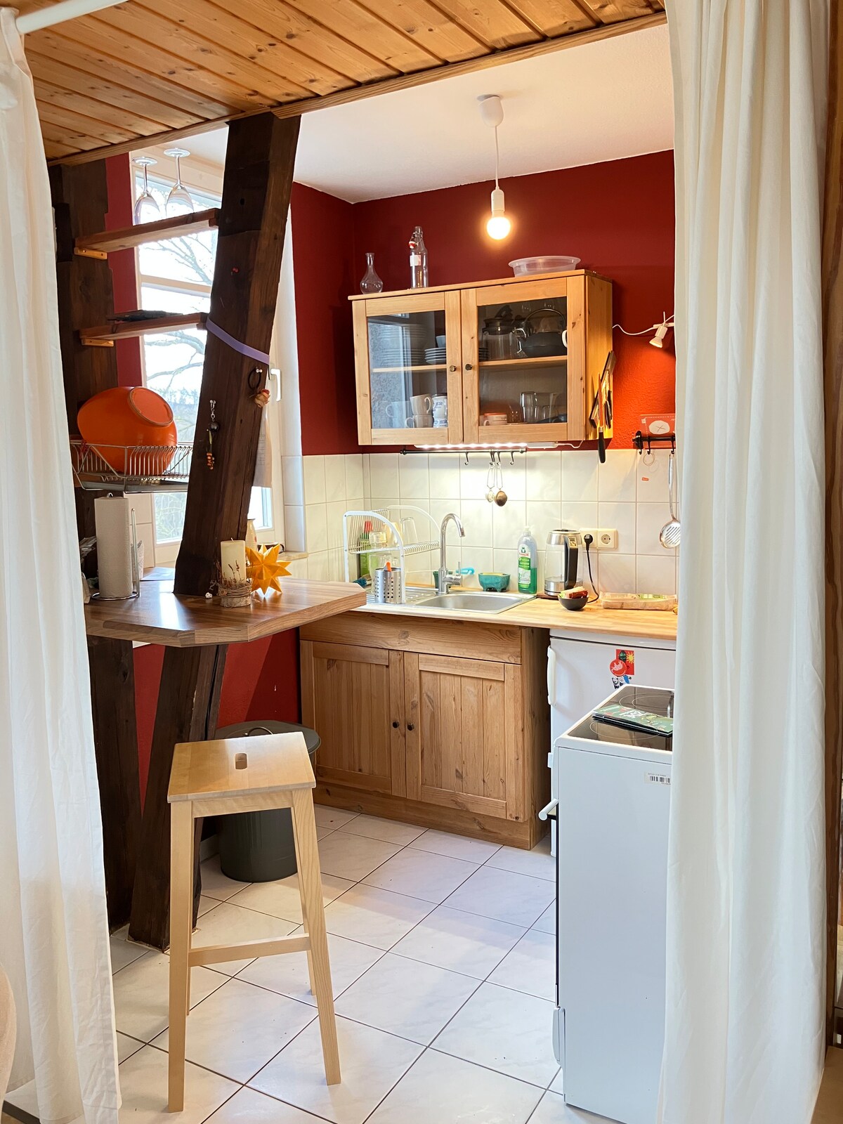 На скрипучих сходах він прямує до мансарди, де можна відразу заселитися в цьому прекрасному таунхаусі з 1911 року і почати з свята, оскільки красива та корисна та корисна гармоніюють один з одним. Театр, соборна площа, Креммербрюк, музеї, церкви, магазини та численні ресторани, кафе та паби неподалік. Для відпочинку або пробіжок є виставка Erfurt Garden, Луїзенпарк і дендрологічний сад неподалік.