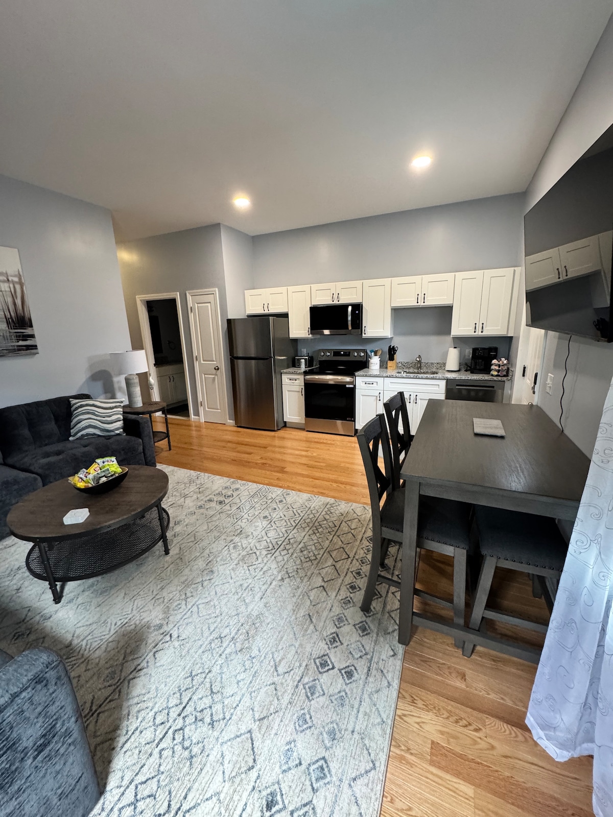 Це не квартира-лофт вашої мами! Ми багато років створюємо одне з найкращих місць для розміщення в Вейрсі. Ми не на озері, але ми поруч із усім, що ви хочете зробити. До барів, ресторанів і Funspot можна дійти пішки! Враження вражає, коли ви відчините власні двері. Плавуче ліжко розміру King size у барнвуді, двоярусні ліжка для дорослих, спеціальне повноцінне ліжко Murphy, ванна кімната з HGTV, 81-дюймовий телевізор, спеціальна міні-кухня, пральня, кава/чайний бар занадто багато, щоб перерахувати