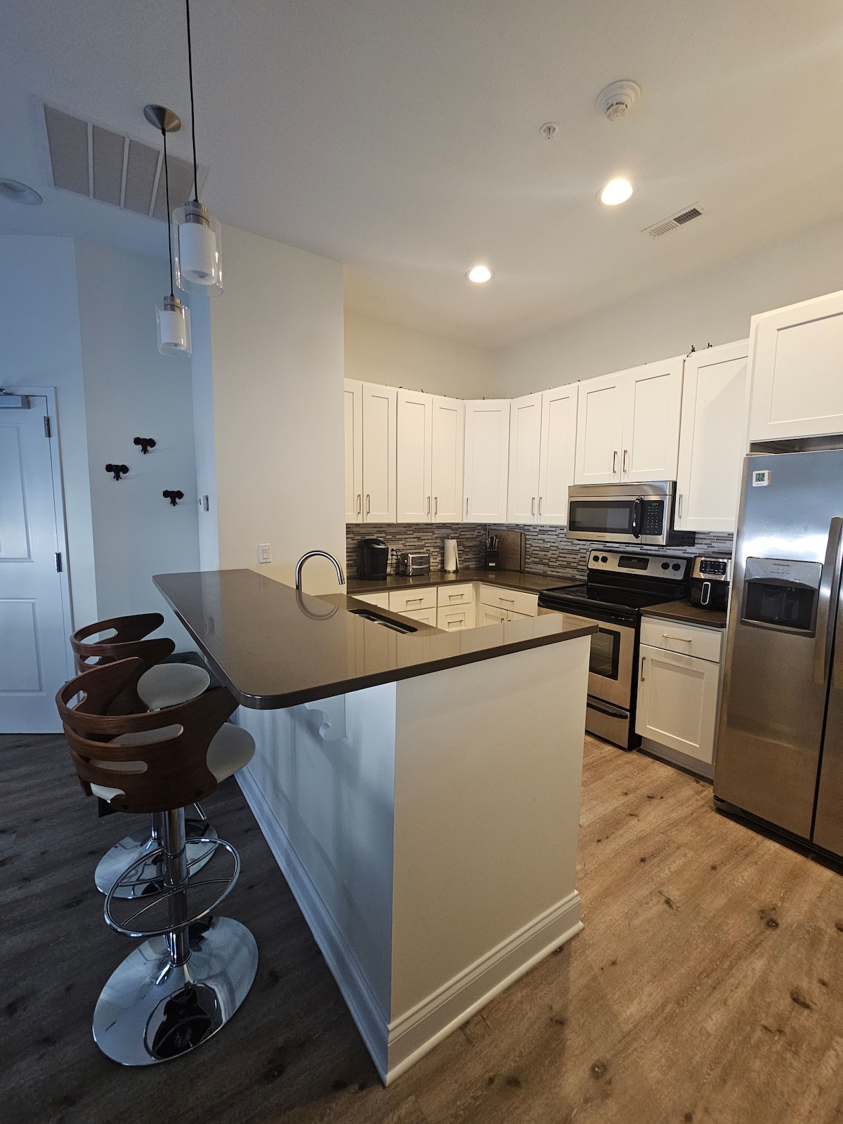 Відчуйте унікальну розкіш! Ідеально підходить для сімей, бізнес-поїздок або романтичних подорожей. Цей простір випромінює комфорт і елегантність завдяки високоякісному оздобленню, 16-футовим стелями, приголомшливим 6-футовим каміном. Відпочиньте в круглій ванні 5 хв або насолоджуйтеся фільмом на смарт-телевізорі 85 хв, оцінюючи історію будівлі. Для активних гостей є критий баскетбольний майданчик і тренажерний зал. Офісна зона для бізнес-мандрівників. Сезонна зона на даху для заходів сонця або насолоди погодою. Для більших груп можна додати додаткові спальні.
