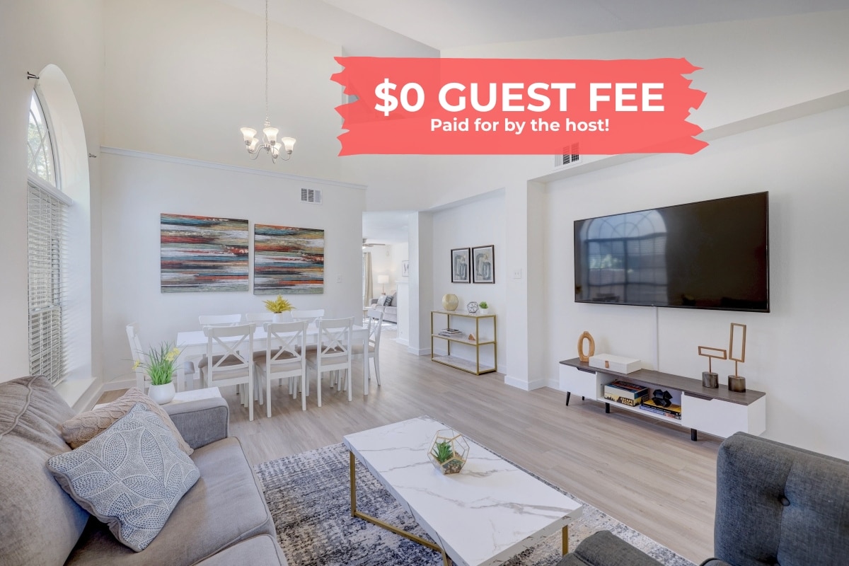 8 хвилин їзди до домену. Розумний, зручний, нещодавно відремонтований будинок 3B2B оснащений красивими новими сучасними меблями, 65-дюймовим (55-дюймовим) смарт-телевізором, синім зубним динаміком, вбудованим стельовим вентилятором, ліжко розміром King size, душовою кабіною з дощовою душовою головкою, розумним декором з вбудованими зарядними пристроями USB, чудовим критим патіо, високошвидкісним Wi-Fi, робочими столами з 24-дюймовим монітором. Ідеальне місце для сімей з дітьми або бізнес-мандрівників, які шукають ідеальний дім далеко від дому.