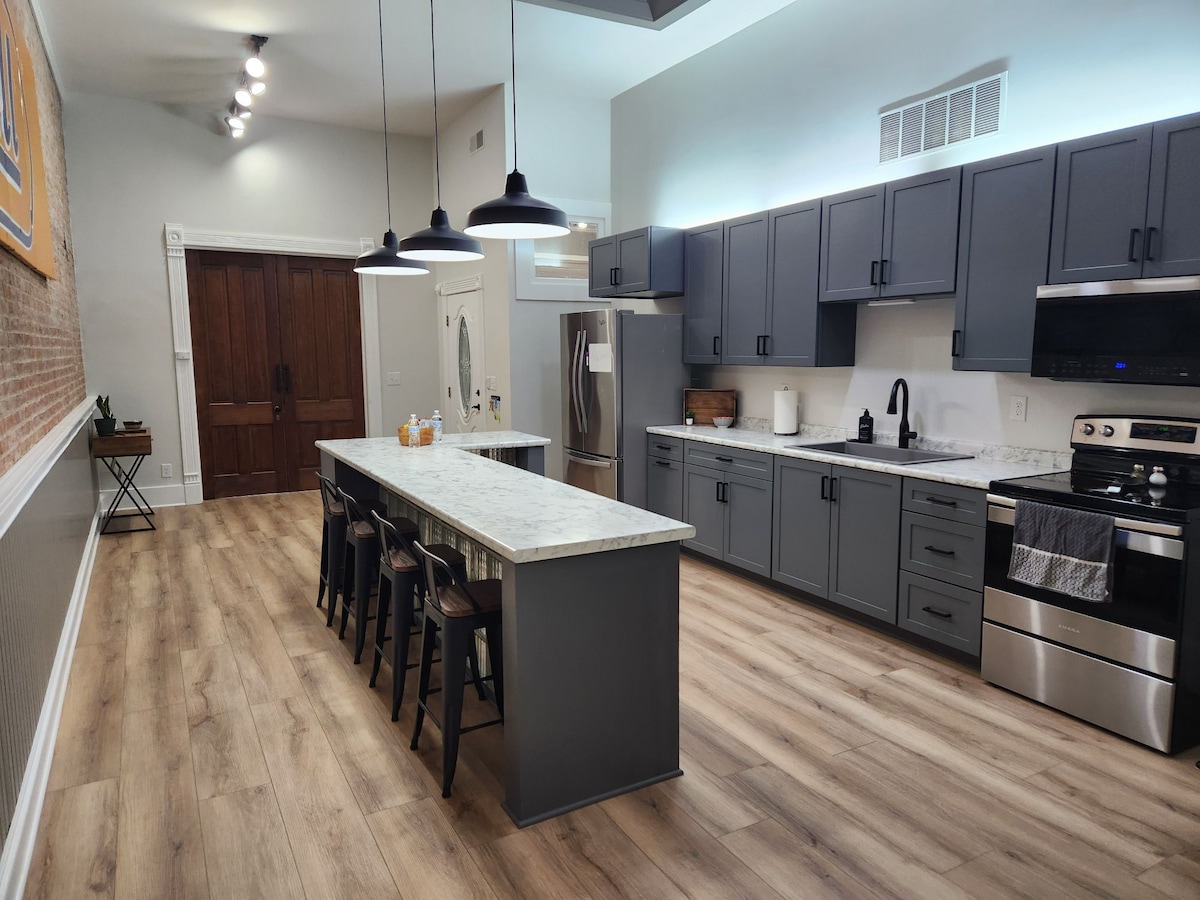 Люкс Market Street розташований в центрі Блаффтона, в декількох хвилинах ходьби від кількох ресторанів, бутиків, кав 'ярні, морозива тощо! Регіональна лікарня River Greenway і Bluffton знаходяться всього за кілька кварталів. У цій нещодавно відремонтованій квартирі є абсолютно нові зручності, зокрема душова кабіна з плитка, 70-дюймовий телевізор 4K, кав 'ярня «все включено» та приголомшливий вид на будівлю суду та Parlor City Plaza. Незалежно від того, чи ви подорожуєте в справах, чи для відпочинку, люкс Market Street завжди готовий задовольнити ваші потреби.