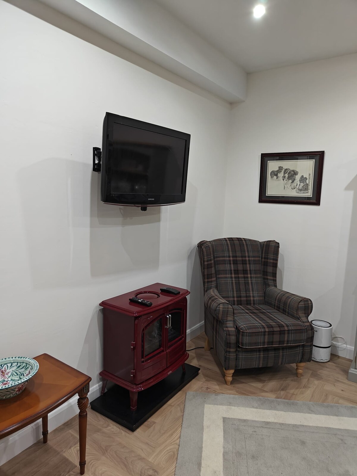 Beautifully renovated spacious wing of large period property. Available for minimum 4 night booking arriving any day One double bedroom (standard double bed) with , en-suite,hairdryer sauna, shower & WC, large living/dining room with solid fuel burner, kitchen with hob, microwave, small electric oven and under counter fridge. Dog friendly