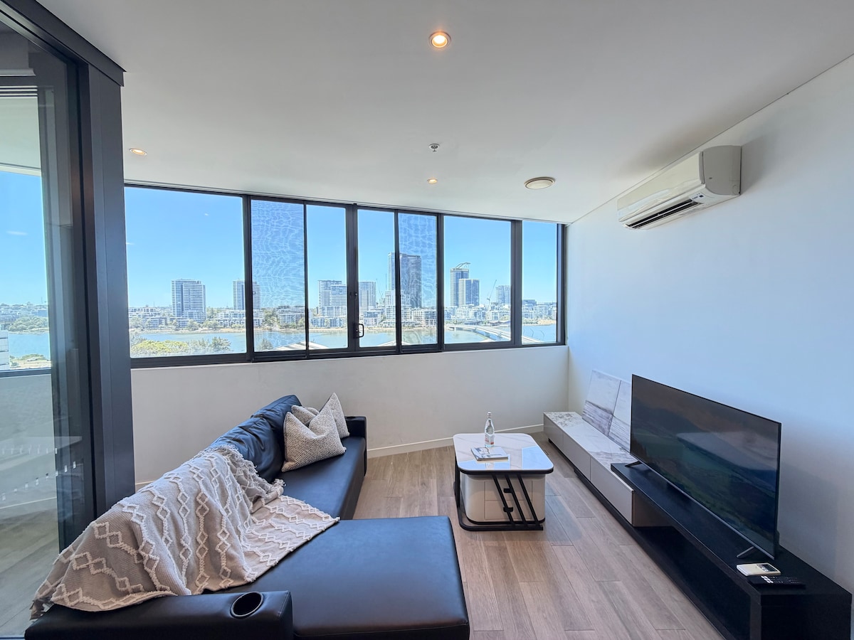 Ласкаво просимо до нашої квартири високого рівня з приголомшливим видом на воду та прекрасним горизонтом міста Парраматта. Особливості квартири: - Дві просторі спальні з ліжками queen-size. - Сучасна вітальня з повністю обладнаною кухнею. - Зручний диван-ліжко для додаткового гостя - Безкоштовне паркувальне місце Околиці: - Родос і Олімпійський парк Сіднея - Місцевий серф-клуб - Місцевий супермаркет, кафе та ресторани. Незалежно від того, чи ви тут у справах, чи для відпочинку, наша квартира - ідеальне помешкання для вашої пригоди в Сіднеї.