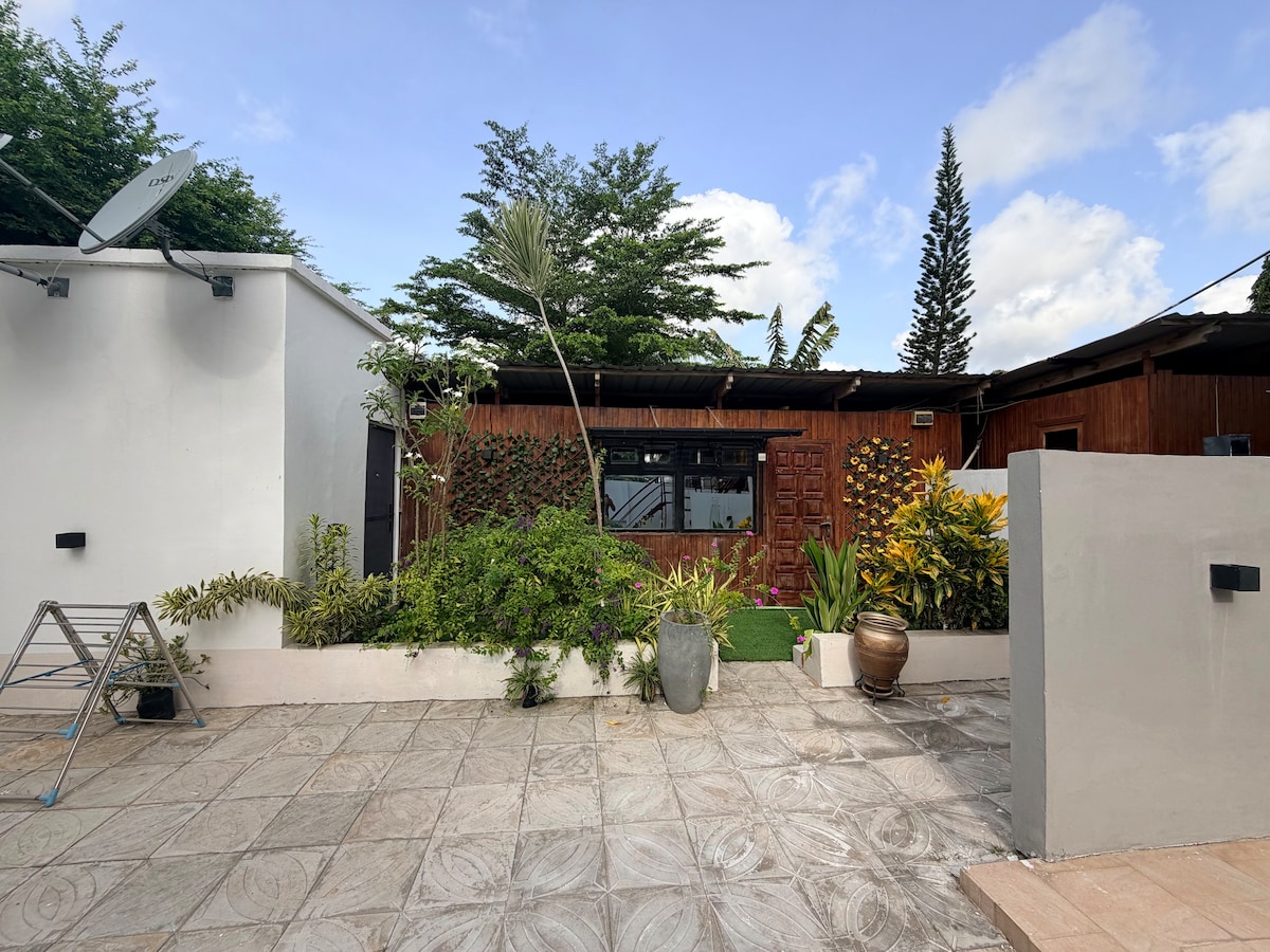 Villa Cabin – стильна, компактна студія, розташована на Osibisa Close, West Airport, всього в 5–8 хвилинах від міжнародного аеропорту Котока. Ідеально підходить для короткострокового або тривалого перебування, має міні-кухню, мікрохвильову піч, смарт-телевізор, безкоштовний Wi-Fi та прибирання під час вашого перебування. Постільна білизна оновлюється для перебувань тривалістю понад 3 дні. Насолоджуйтеся сучасним комфортом, приватністю та безпекою в тихому оточенні — ідеально підходить для мандрівників, які шукають зручності та відпочинку в центрі Аккри.
