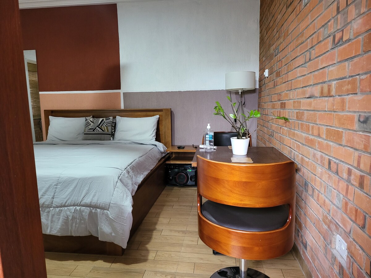 The suite is posh & clean. White walls with wood trims, beautiful portraits, arts & flowers decorate the whole space. The suite comes with a very comfy double bed and comfy sofa too. Unlimited Wifi Favorite movies via Netflix Air conditioner Bathroom Water Heaters A fully functional kitchen is also inclusive.