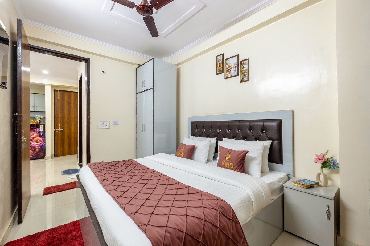 Преміальні апартаменти 1BHK у секторі 43, Гургаон, з кондиціонером у вітальні та спальні, а також міні-кухнею з індукційною плитою, мікрохвильовою піччю та столовими приборами. У шикарному районі, в пішій доступності від торгового центру Gold Souk Mall та школи Shalom Hills, 2,2 км від станції метро Millennium City Centre та 2,1 км від лікарні Fortis. Іноземні гості вітаються. Рання реєстрація заїзду залежить від наявності вільних місць і передбачає стягнення 500 рупій, а пізня реєстрація виїзду також передбачає стягнення 500 рупій за кожні 3 години після цього.