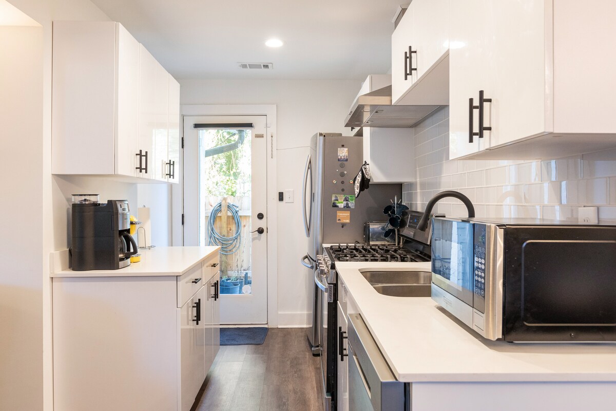 Наш нещодавно відремонтований будинок 1920-х років ідеально підходить для сімей або друзів, які відвідують Атланту. Ми знаходимося в центрі місті, всього в декількох кроках від міського ринку Понсе та Белтлайн. Цей простір нижнього рівня включає дві спальні, дві ванні кімнати та бонусну кімнату. Бонусна кімната наразі призначена як тренажерний зал, тому вам не доведеться пропустити свої фітнес-цілі, навіть коли ви подорожуєте!