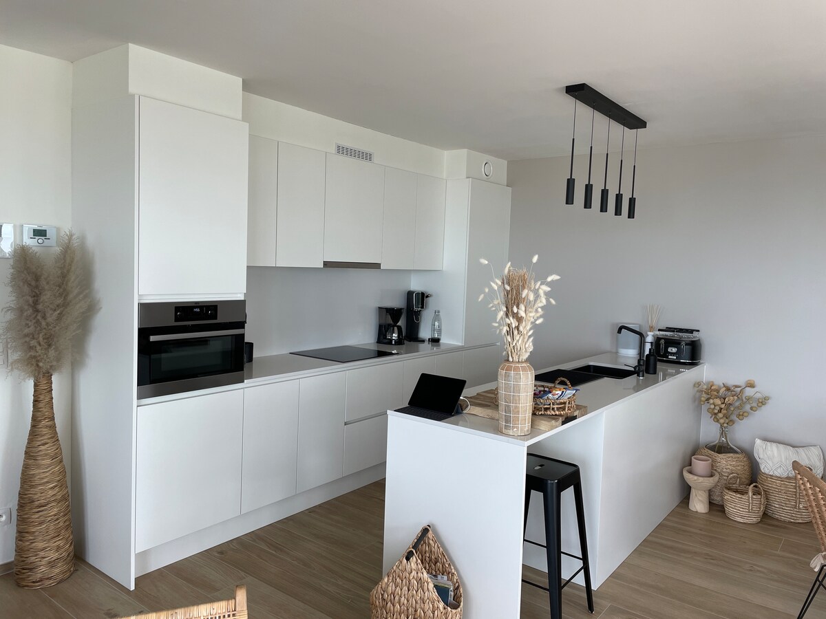 Розкішна квартира, де можна насолодитися спокоєм у стильній обстановці з найвищих поверхів із феноменальним видом на море. Вихідні: п 'ятниця з 18:00 до неділі з 14:00 Середина тижня: неділя з 18:00 до п 'ятниці з 14:00 Тиждень: неділя 18:00 - неділя 14:00 * Безкоштовний паркінг у будівлі. * Доступні безкоштовні 2 велосипеди. * Дві просторі тераси з зоною відпочинку та обіднім столом. * Безкоштовний WI-FI. * Без додаткових зборів за прибирання або споживання