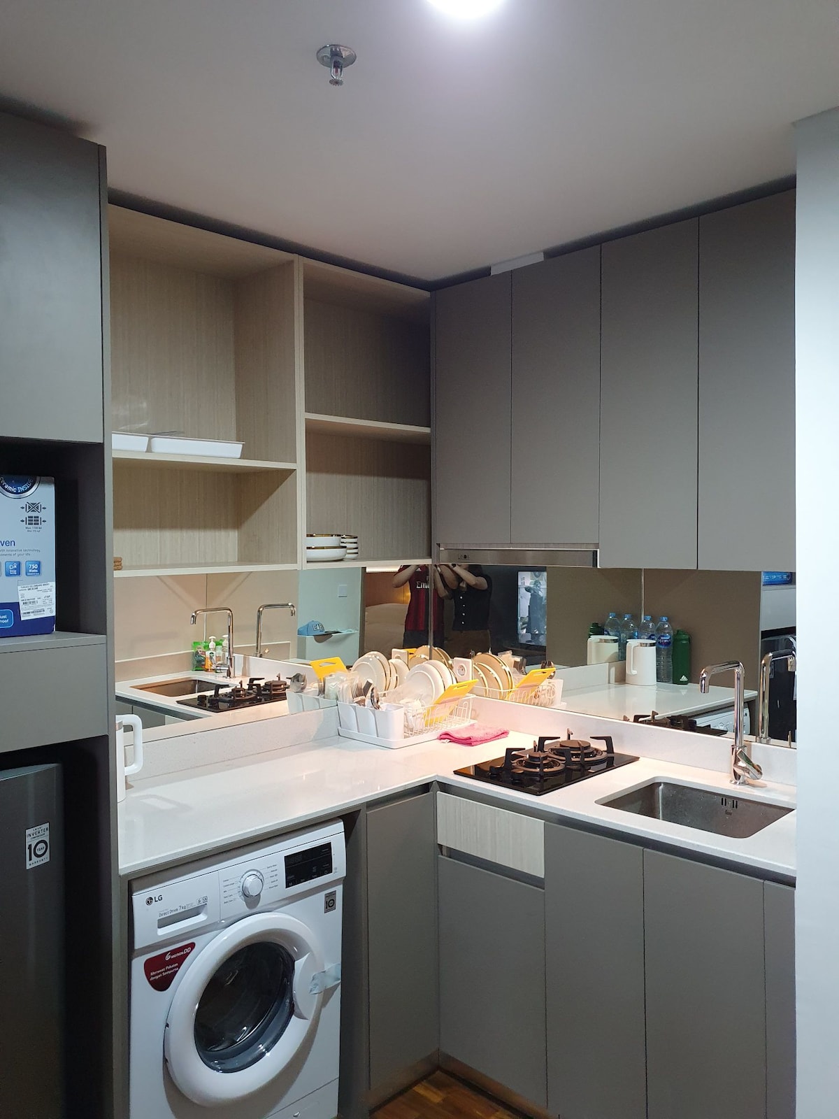 Абсолютно нова квартира-студія в сучасному стилі з 50-дюймовим телевізором Samsung Smart Tv Crystal 4K UHD. Розташований у Tower Fragrant, з 'єднаному з торговим центром Hublife&Taman Anggrek. - Безкоштовний Netflix. - Безкоштовний Wi-Fi. - Безкоштовна мінеральна вода - Диспенсер - Електрична плита. - Міні-холодильник. - Мікрохвильова піч. - фен; - Омивач для тіла - робочий стіл; Пам 'ятки поблизу: 5 хвилин до торгового центру Central Park, торгового центру Neo Soho Mall і 10 хвилин до торгового центру Ciputra. 20 хвилин до аеропорту.