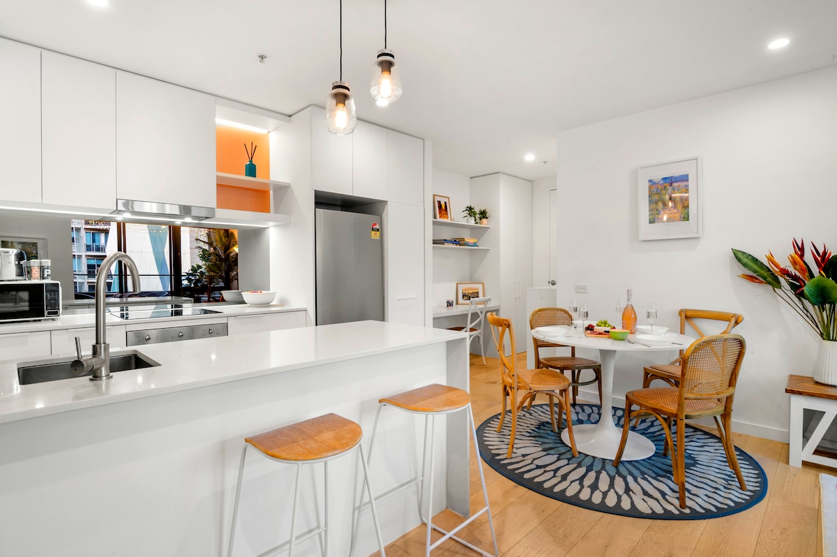 Конвертація складу з архітектурним дизайном, розташована в жвавому районі Фіцрой. У цьому продуманому помешканні є дизайнерські меблі та доглянуті твори мистецтва. Розташоване поруч з культовим басейном Fitzroy. Апартаменти з двома окремими спальнями та двома терасами пропонують достатній простір для відпочинку та насолоди. Простора ванна кімната може похвалитися розкішною окремою ванною, яка ідеально підходить для відпочинку. Сучасна кухня повністю обладнана усім необхідним.
