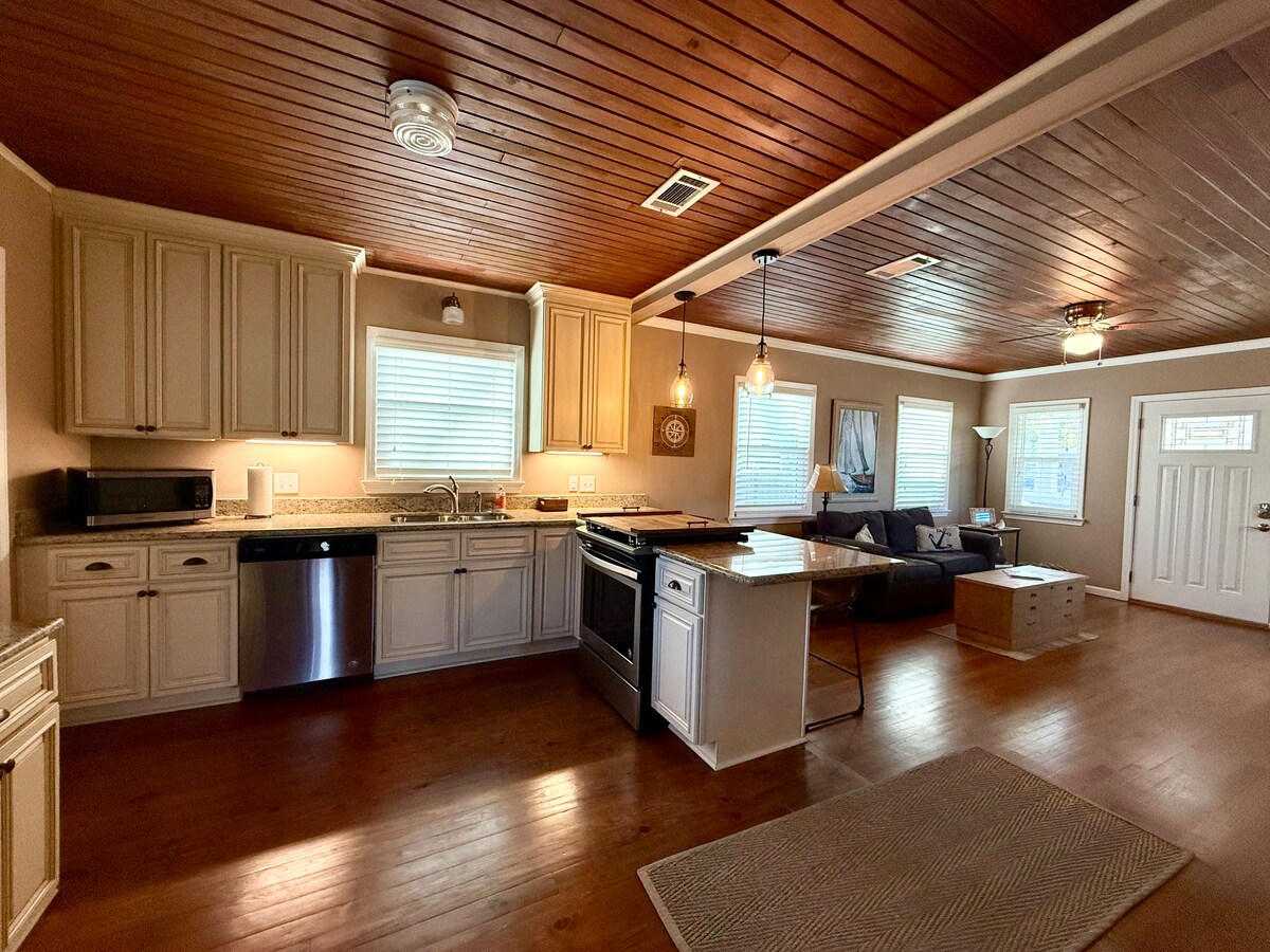 Повністю відремонтований історичний будинок у стилі дробовика 1940-х років із 2 спальнями та 2 ванними кімнатами. Це помешкання розташоване всього в 1 милі від центру Пенсаколи і є ідеальним балансом оригінального характеру та сучасних зручностей. До яхт-клубу Pensacola, кількох барів і ресторанів можна дійти пішки, а також до всесвітньо відомого рибного ринку Джо Патті. 15 хвилин їзди до пляжу Пенсакола. У цьому помешканні є 2 смарт-телевізор, Wi-Fi, криті веранди, камін, огороджений двір та багато додаткових паркувальних місць. Добре укомплектована кухня.