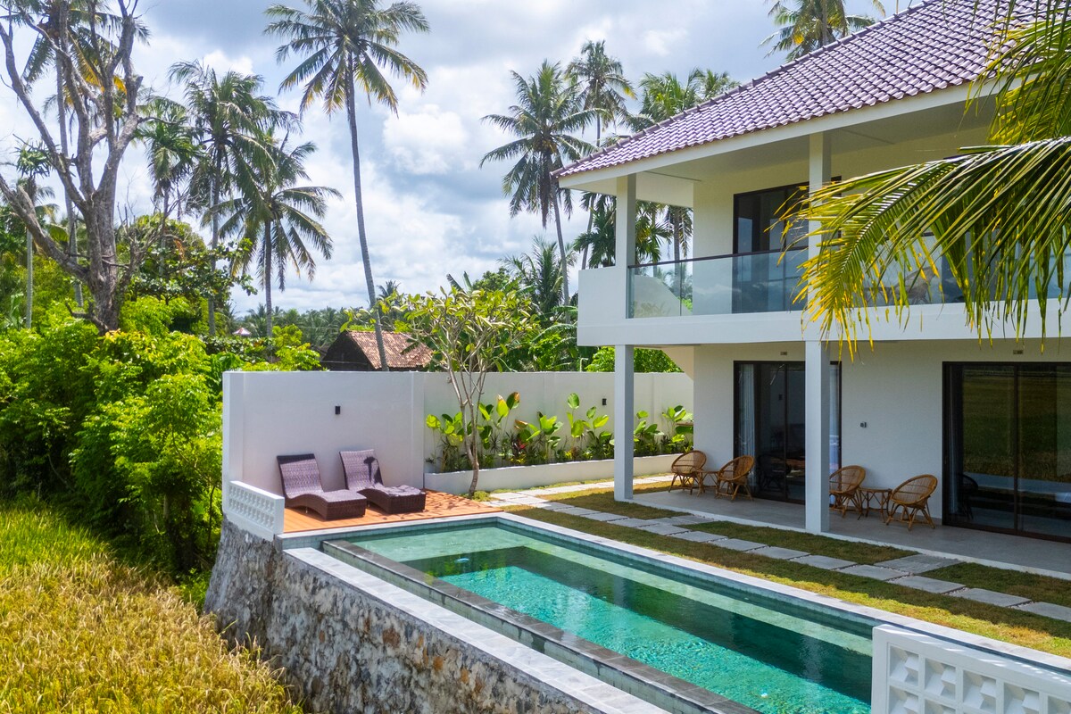 Насолодіться сучасною розкішшю та захоплюючими краєвидами з цієї вілли з двома спальнями. Тут є приватний басейн, вітальня з відкритим плануванням і просторими спальнями на другому поверсі, з яких відкривається вид на красиві рисові поля з одного боку та пляж Мандірі з іншого.