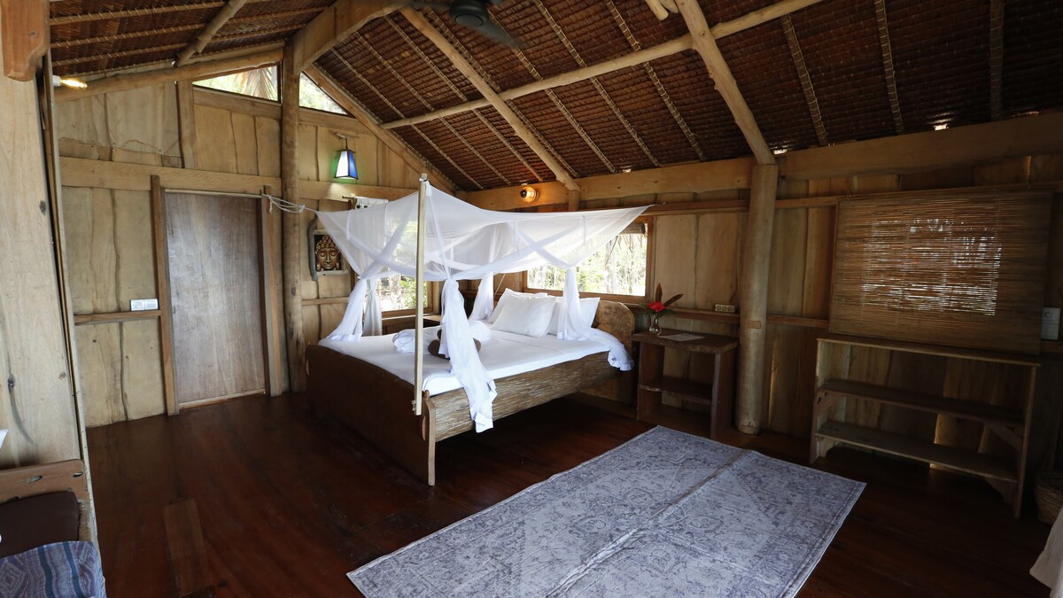 ОКРЕМА КІМНАТА ДЛЯ 2 ДОРОСЛИХ + 1 ДИТИНА (з окремою ванною кімнатою). БЕЗКОШТОВНИЙ ІНТЕРНЕТ STARLINK. Традиційне помешкання Mentawai - Ebay - пляж - незаймана тропічна лагуна з серф-брейком на передньому плані та 15+ іншими місцями для серфінгу в межах 20 хвилин на нашому швидкісному човні. У вартість входить повний пакет послуг з індонезійськими стравами (сніданок, обід, вечеря, кава, чай, вода). Наше помешкання складається з: - Бунгало на 2 осіб - бунгало на 2+1 особи; - бунгало на 2+1 особи; - Проживання в сім 'ї на 4 осіб