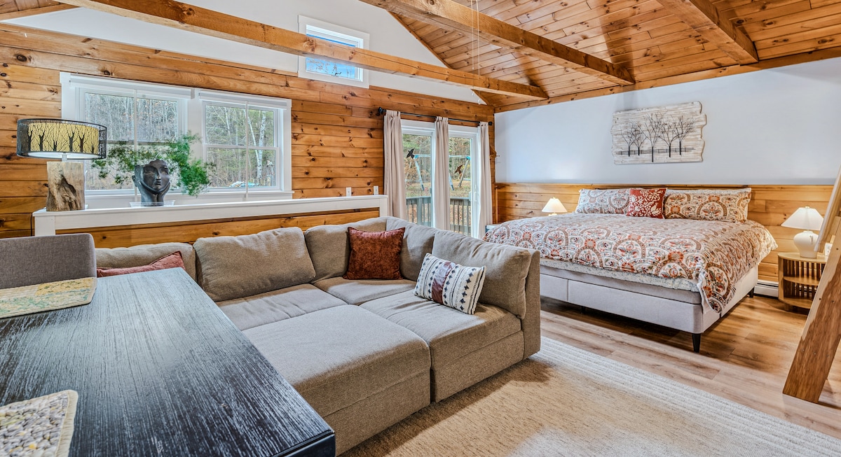 Akasha, the first floor of this historic 1800’s carriage house in the center of Putney Village, was gutted and meticulously renovated by the hosts into a unique wellness apothecary and cafe and now serene and beautifully conceptualized open concept studio apartment. Aged wood tones, textured plaster walls, poured concrete counter tops and elegant dining bar imbue an old world tea house aesthetic with modern sensibilities. A unique space for quiet contemplation and relaxation.