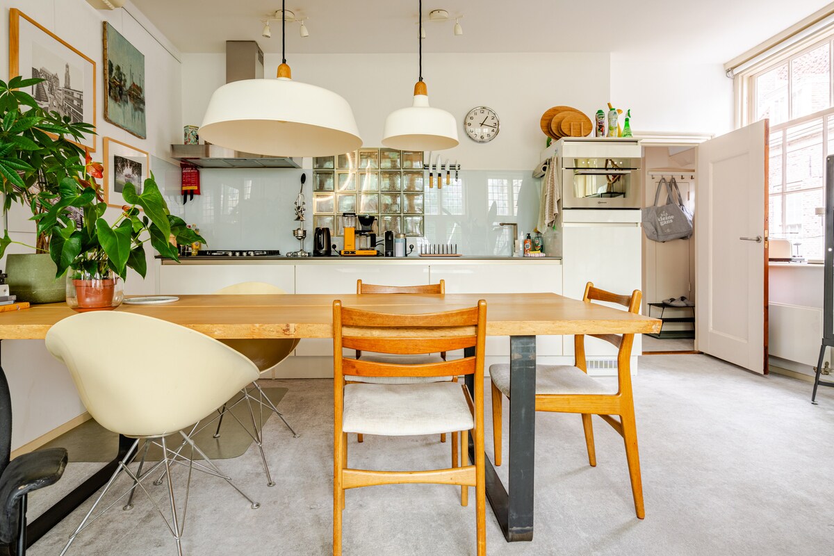 Ця квартира площею 60 кв. м ідеально підходить для пар, які подорожують Європою, це справжній дім далеко від дому. І це ідеальне місце для знайомства з містом Утрехт. Крім того, це також ідеальна квартира для пар на робочому відпочинку через два окремі робочі місця, 1 у спальні та 1 у вітальні. В обох приміщеннях є потужний сигнал Wi-Fi, що робить відеодзвінок можливим. Ця сучасна дизайнерська квартира в багатовіковому будинку (anno 1584) знаходиться в центрі Утрехта.