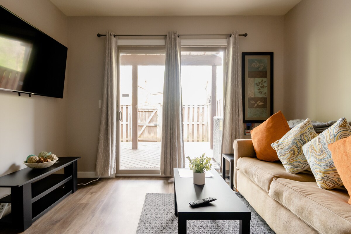 В декількох хвилинах ходьби від гірськолижного курорту Wisp і озера Діп-Крік! Приходьте, коли будете, і сядьте за столом природи під навісом зірок. Насолоджуйтеся атмосферою лісу та лугами з нашого люксу площею 825 кв. футів, розплавляючи свої турботи перед каміном. Розташований між I-68 і озером Діп-Крік/Вісп. Ми сподіваємося забезпечити спокійний пейзаж, де ви зможете знайти спокій і відпочити на природі. Наше помешкання добре підходить для бізнес-мандрівників і як романтичний відпочинок пари!