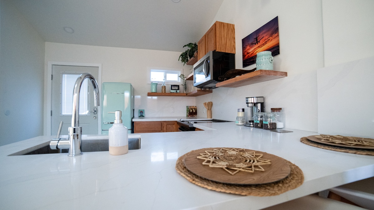 Простий, затишний відпочинок – як у старих мандрівних помешканнях Цей крихітний, але привабливий гостьовий будинок/студія пропонує ностальгічний погляд на класичні подорожі. Гості можуть відпочивати в продуманому просторі з базовими кухонними зручностями, центральним кондиціонером і опаленням, ванною кімнатою та смарт-телевізором із потоковими сервісами. Ідеально підходить для відпочинку або мінімалістичного відпочинку.