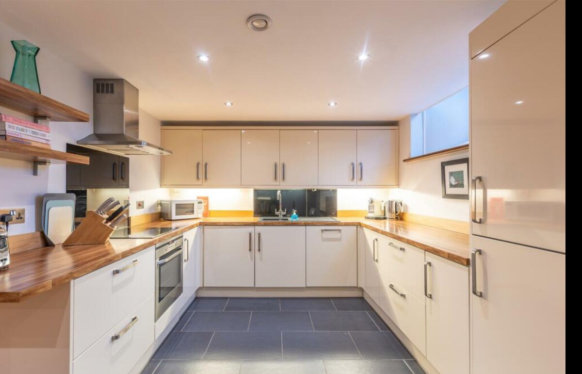 Проведіть час і відпочиньте в цьому спокійному, стильному сільському помешканні. Насолоджуйтеся відпочинком у розкішній обстановці в оточенні сільськогосподарських угідь і гарних краєвидів із домашніми зручностями. Відкрийте для себе краєвид із ліжка «super king-size», великої окремої ванни або балкона Джульєтти. Відпочиньте у великій вітальні, дивлячись улюблені фільми на 75-дюймовому смарт-телевізорі, WI-FI та об 'ємному звуку. У вас є кухня, обладнана електричною вентиляційною плитою та 2 варильними поверхнями для приготування їжі, а також обідній стіл, за яким можна їх їсти.