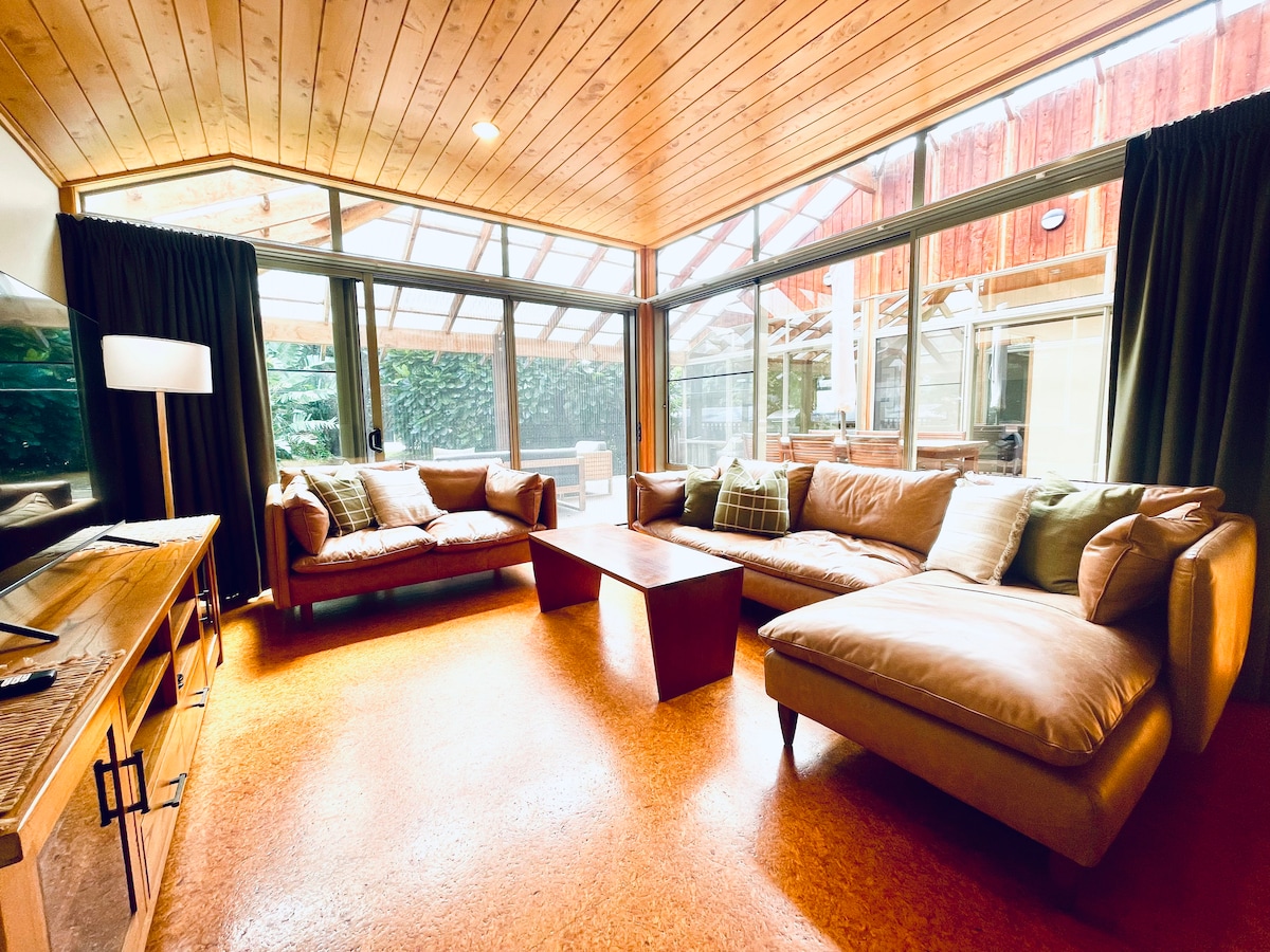 Окрема квартира в унікальному будинку з мистецьким дизайном: красива студія з чудовою новою ванною кімнатою, розташована на пагорбах над Куаотону, в оточенні новозеландського лісу. Насолоджуйтеся сидінням на терасі під гігантськими папоротями, слухайте пташині пісні та бурхливу річку. Якщо вам пощастить, ви навіть почуєте дзвінок нашого мешканця Ківі! Місце для відпочинку та відновлення сил лише за 3 хвилини їзди до села Куаотуну та пляжу.